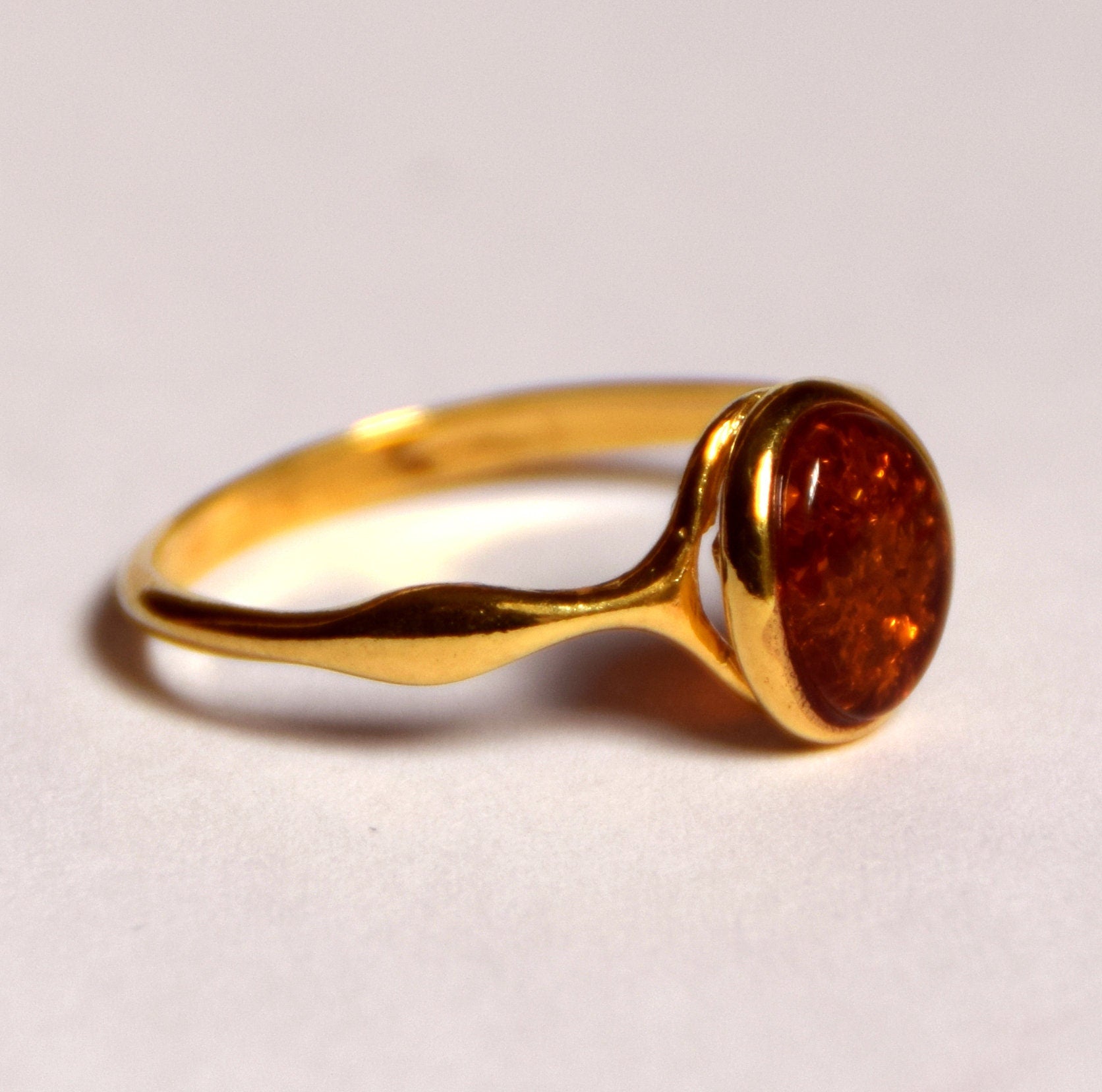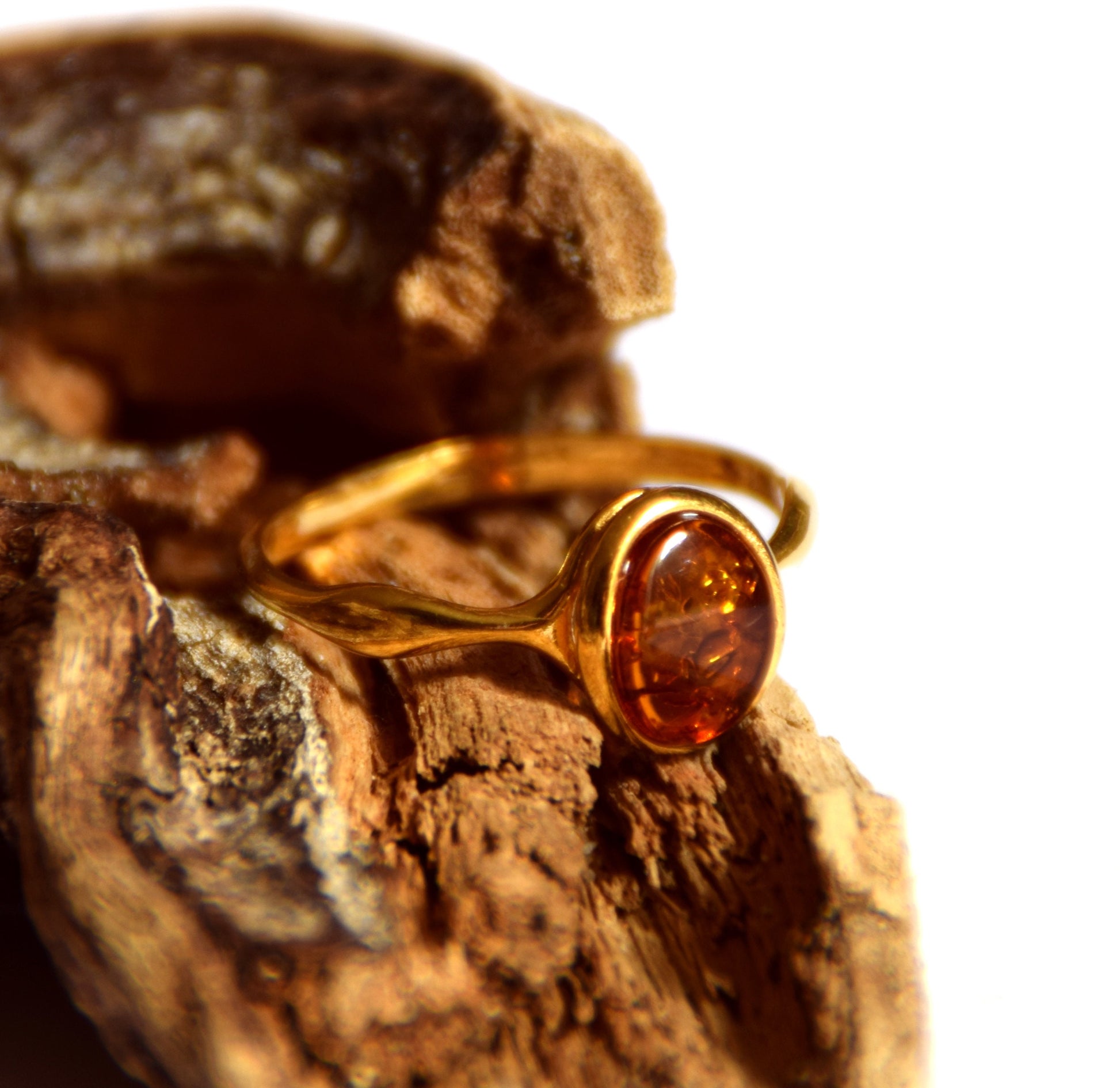 Anello a fascia con Ambra cognac naturale e Argento placcato in Oro 18k, MJ Baltica, BZP020