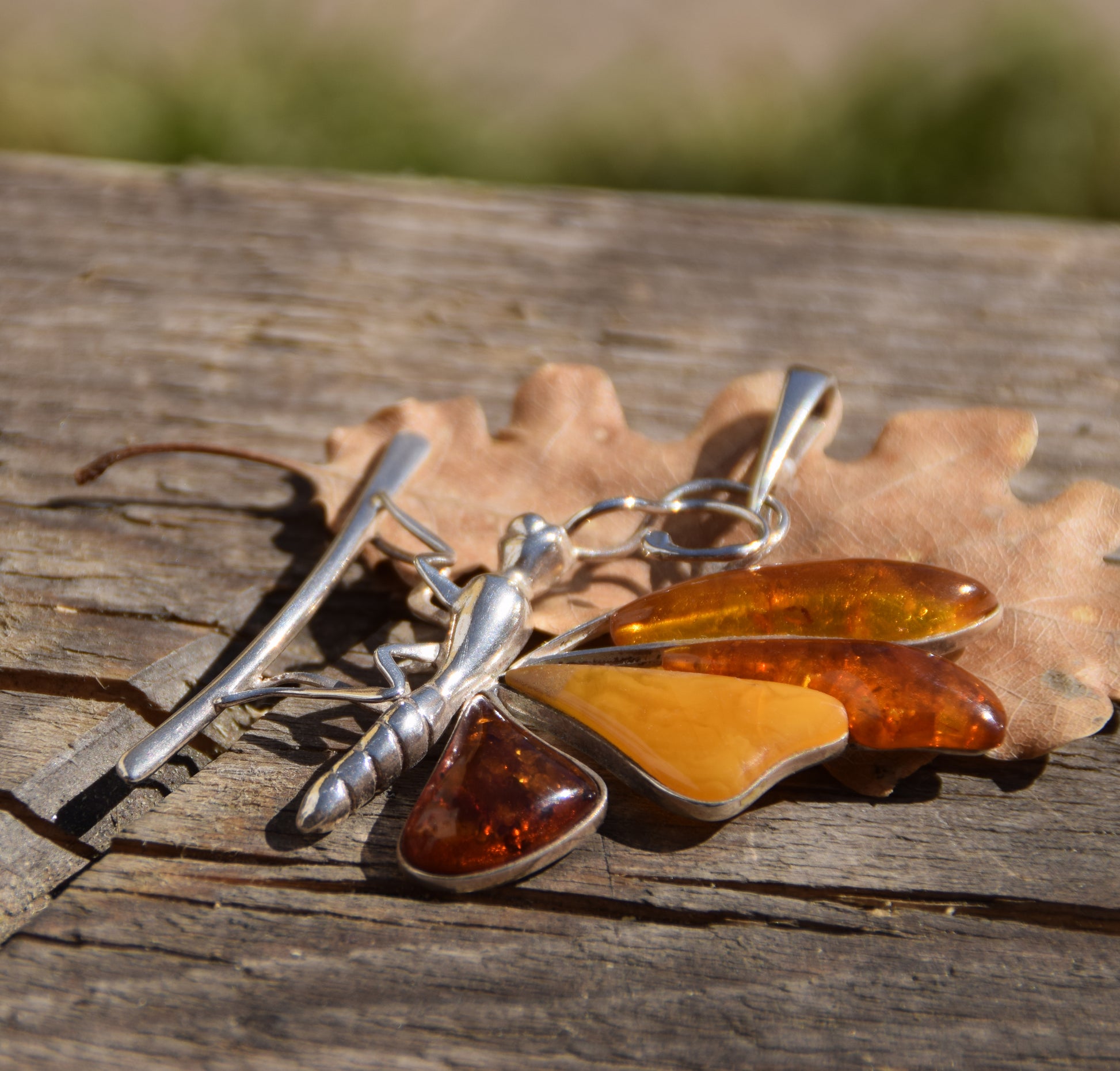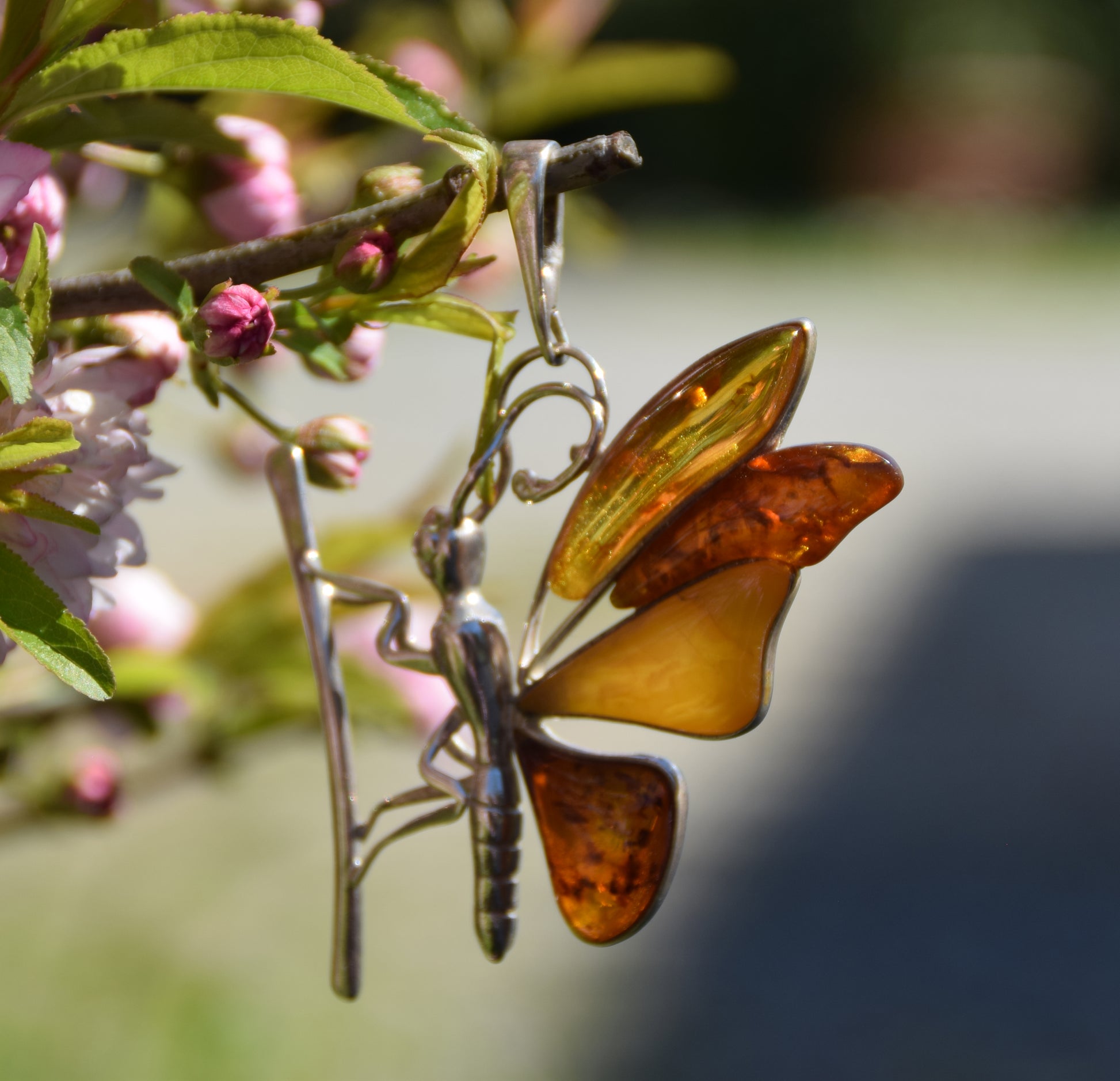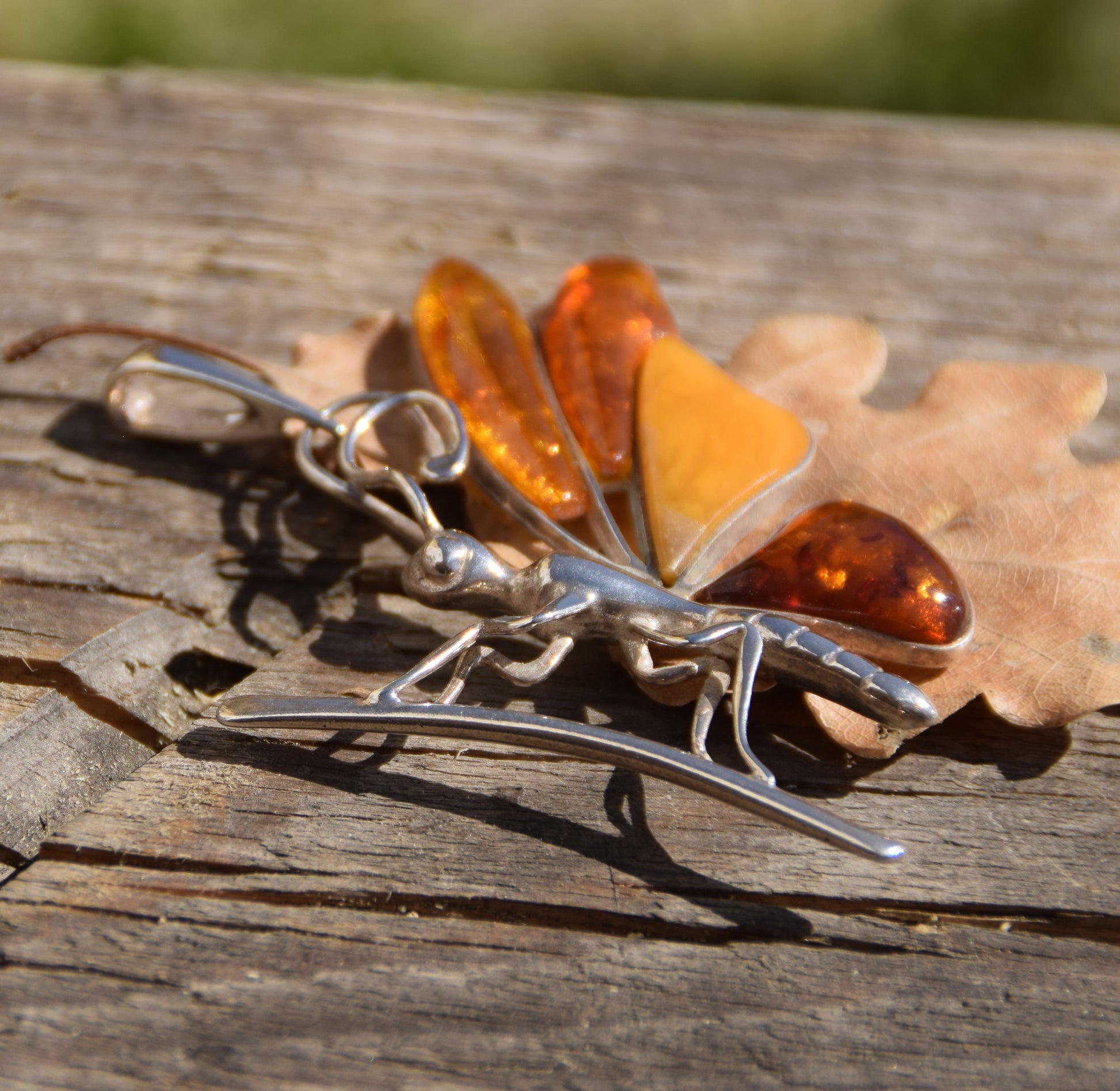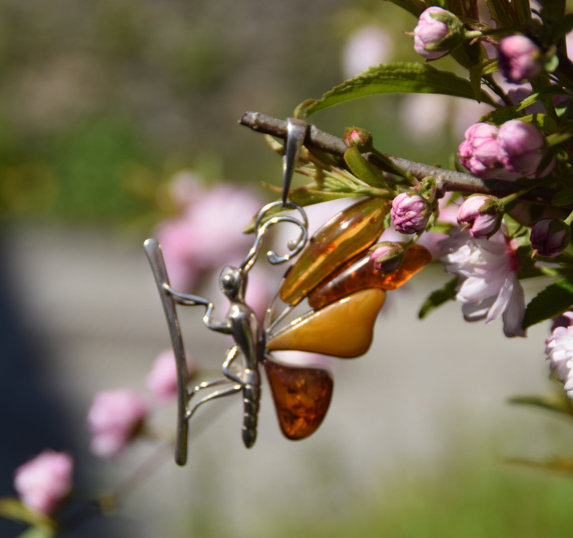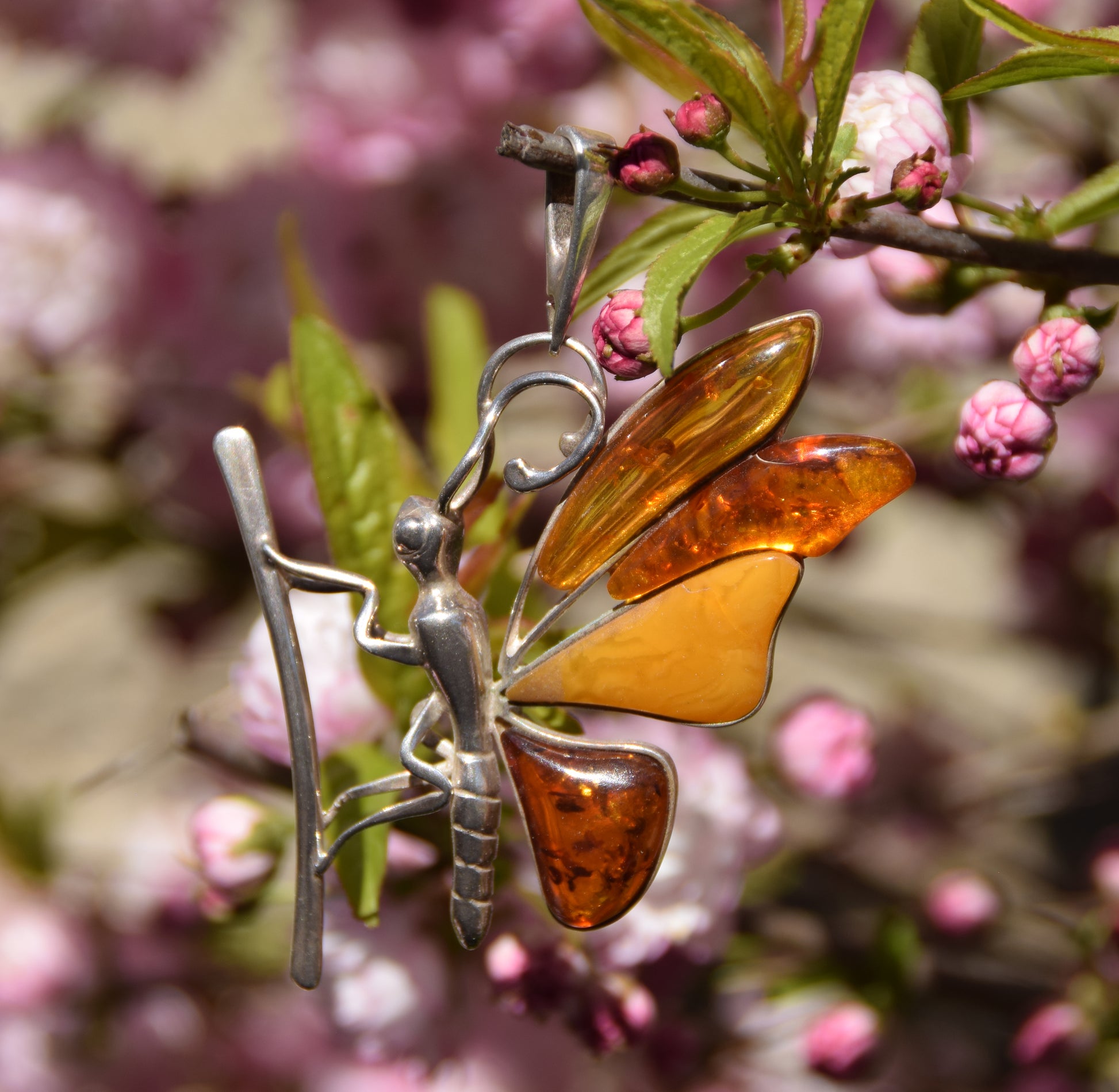 MJ Baltica, ciondolo, Ambra naturale Baltica, Argento 925, farfalla, grande, stupenda, artigianale, BW204