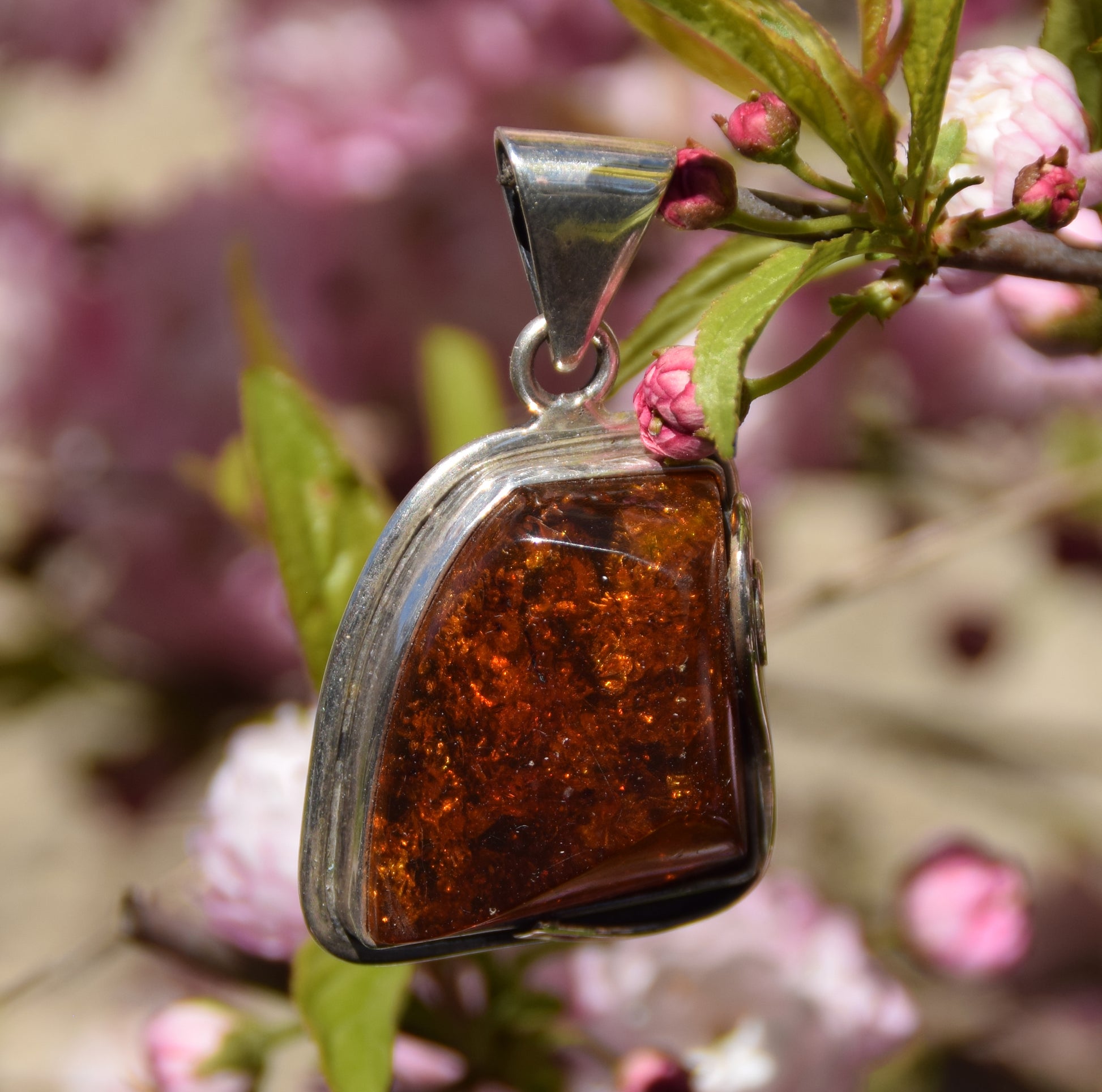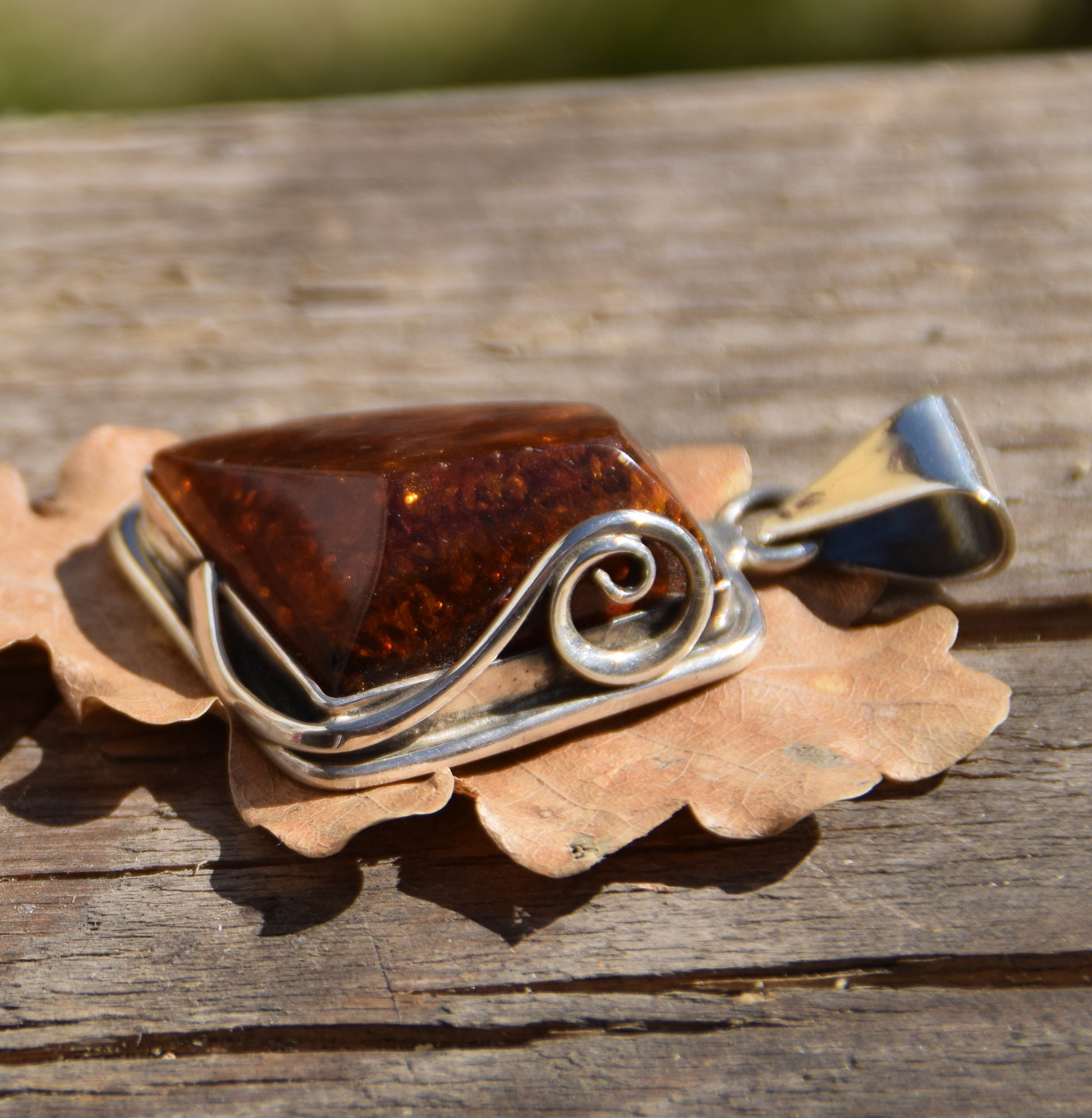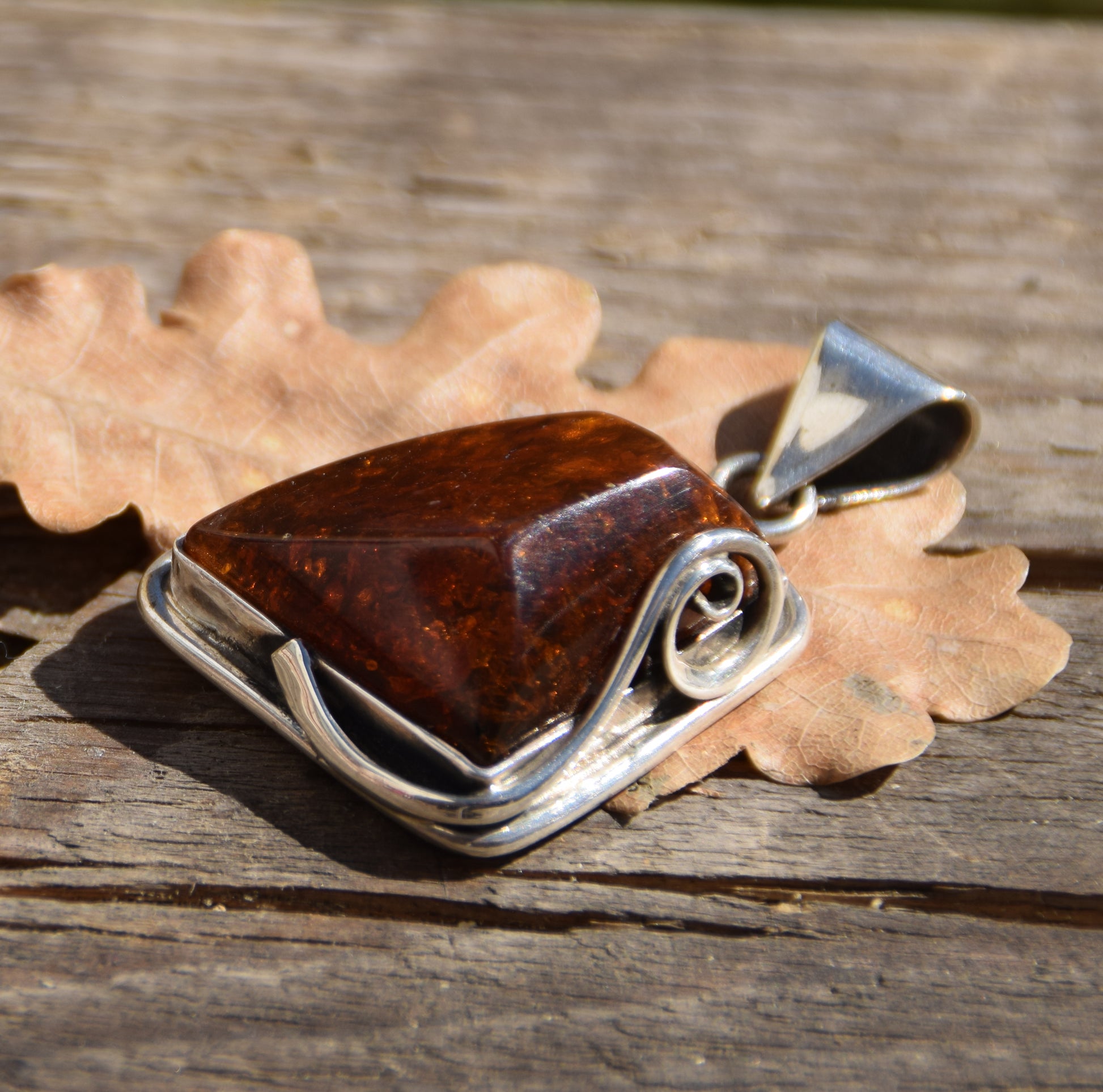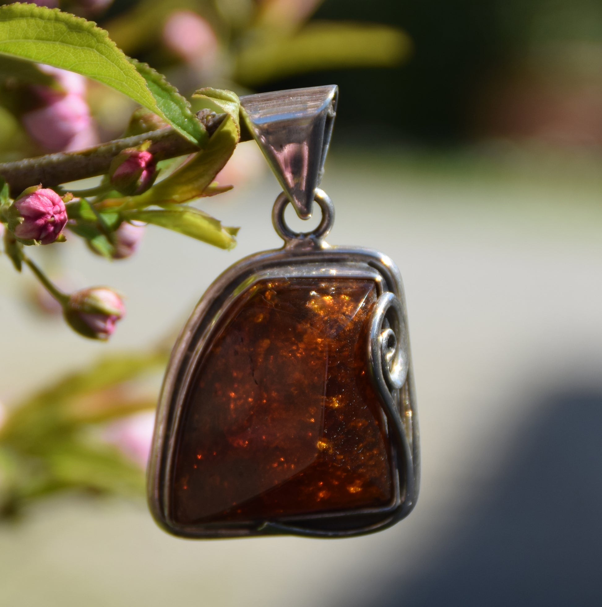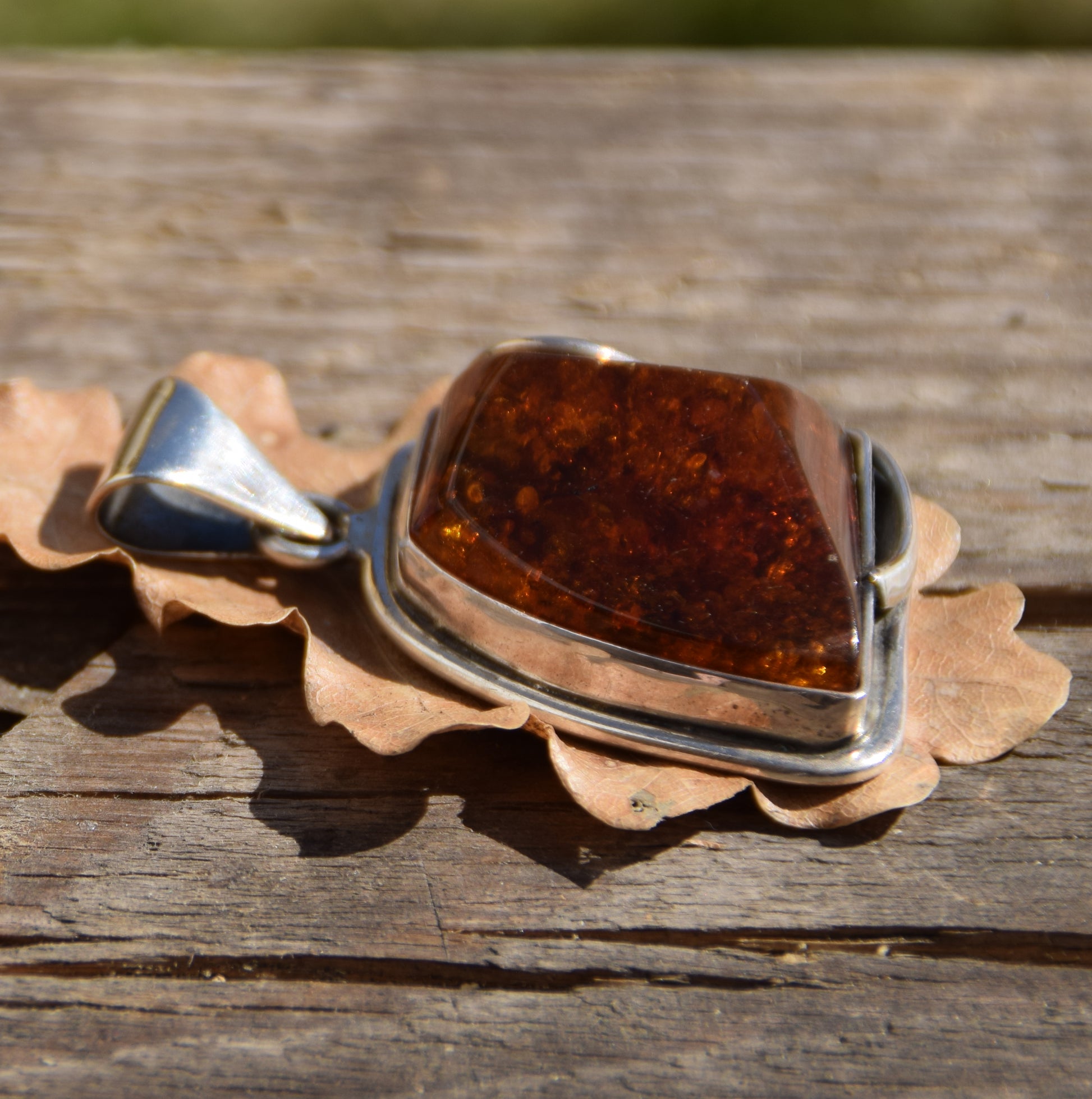 MJ Baltica, ciondolo, Ambra naturale Baltica, Argento 925, grande, unico, artigianale, BW197