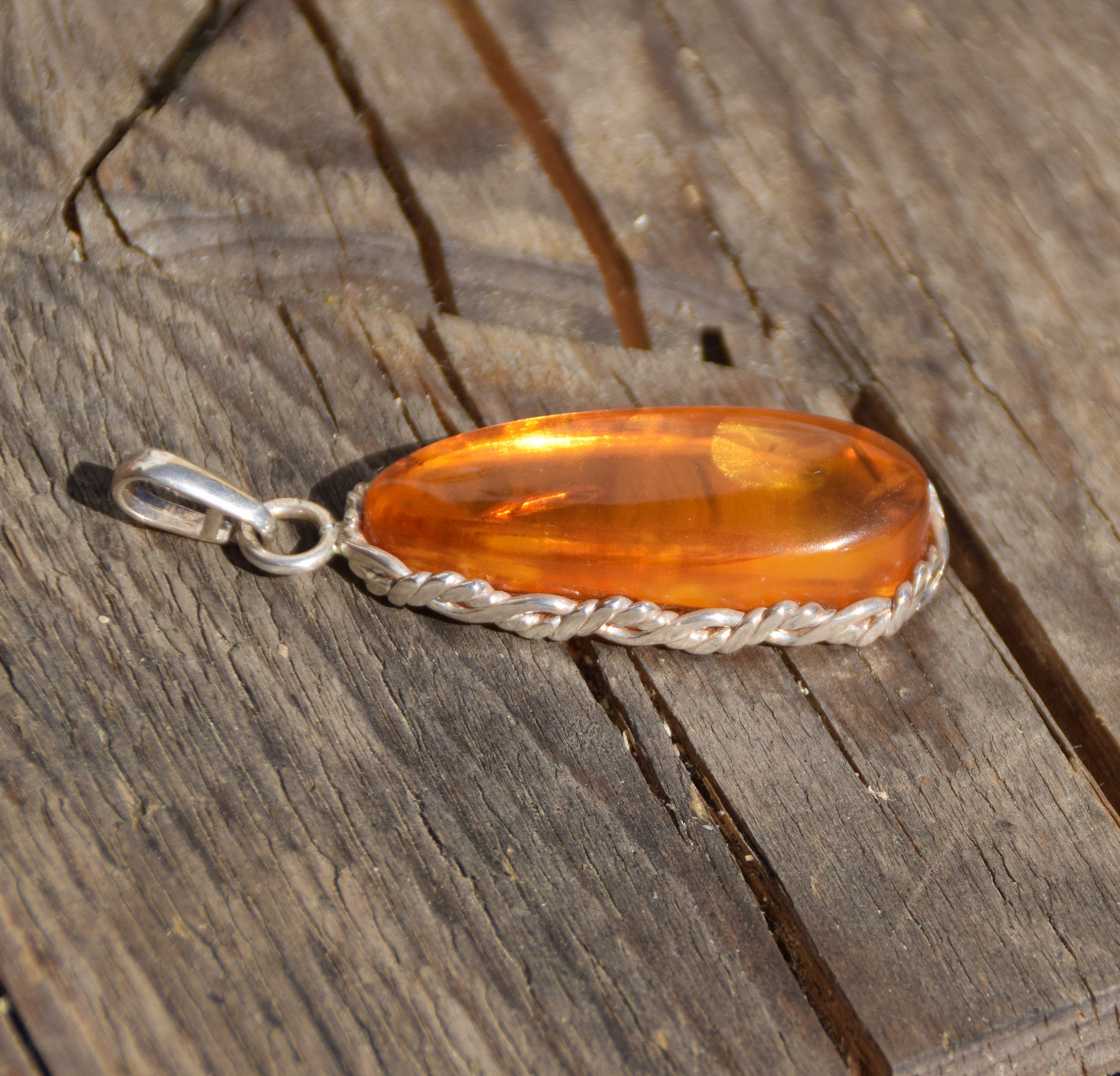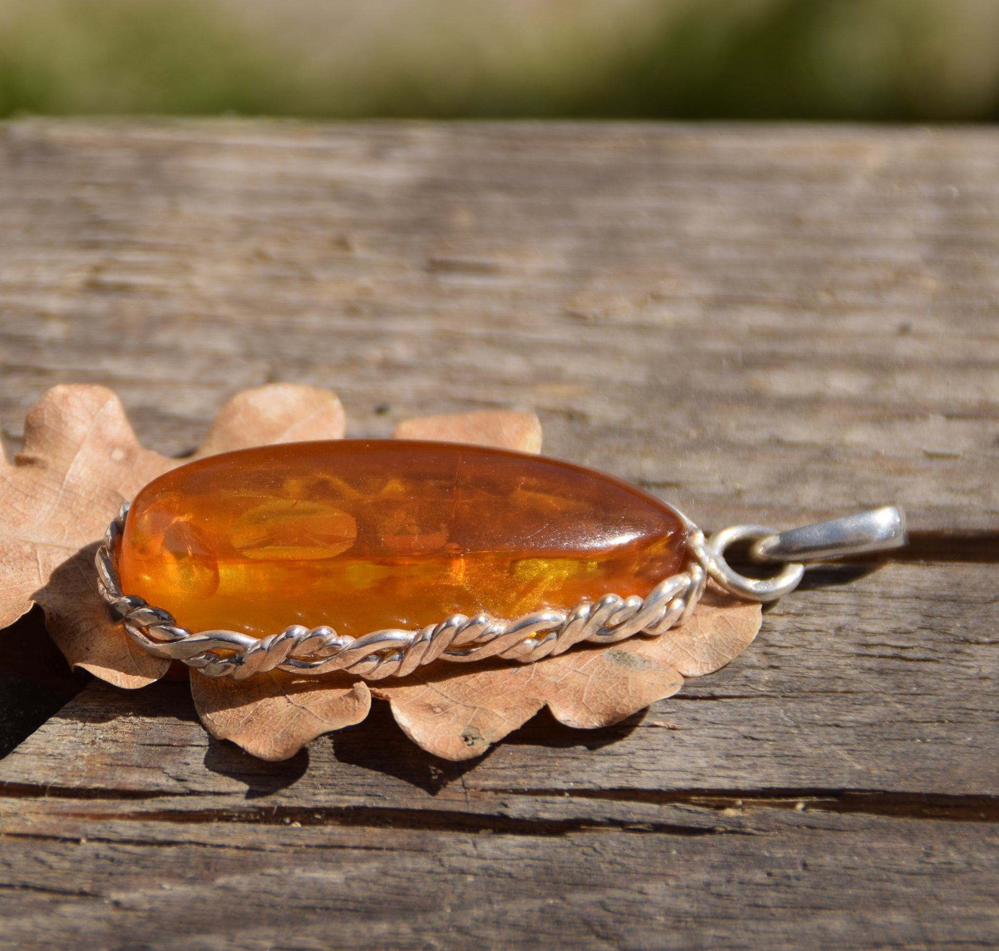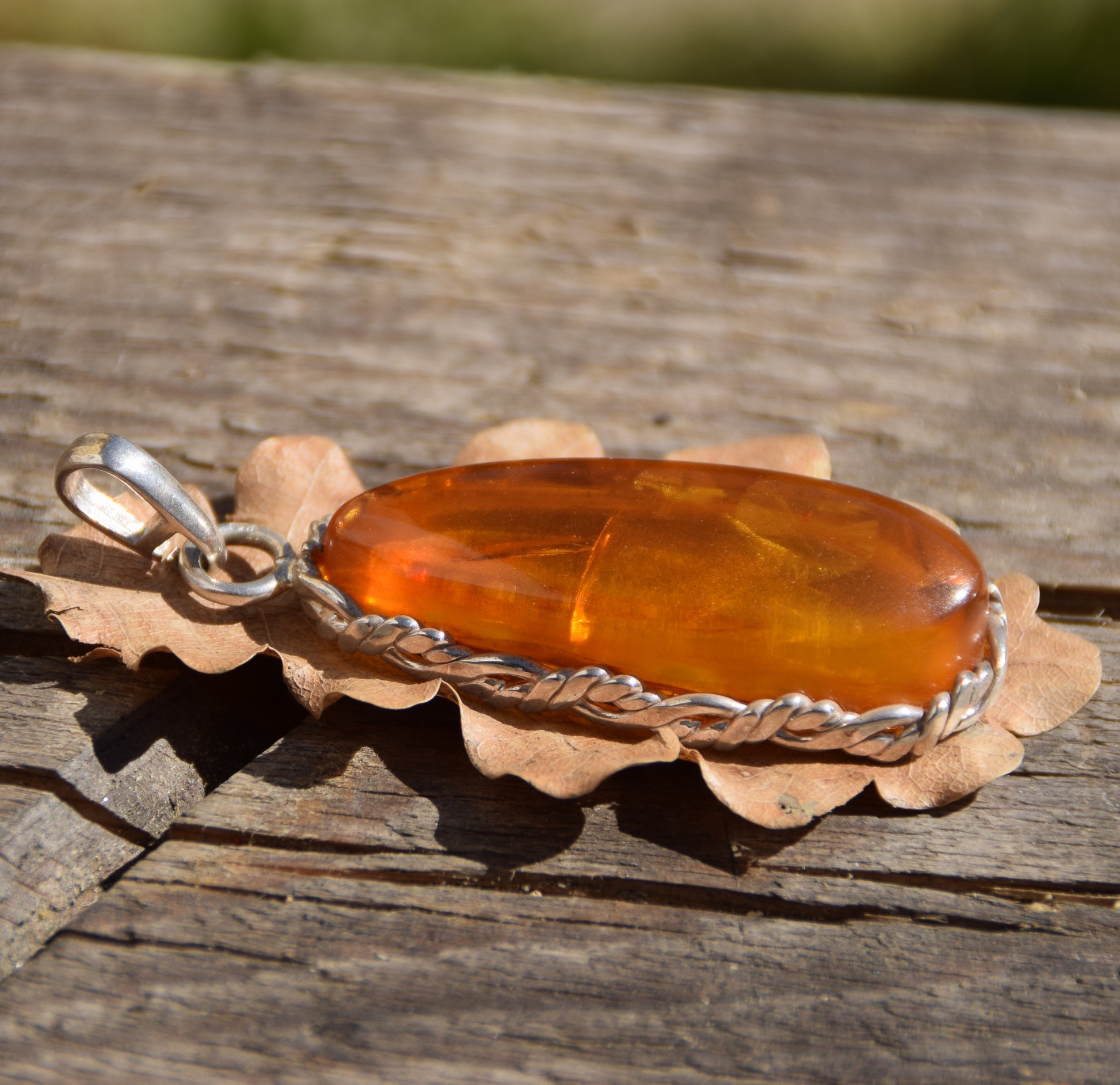 MJ Baltica, ciondolo, Ambra naturale Baltica, Argento 925, grande, unico, artigianale, BW202