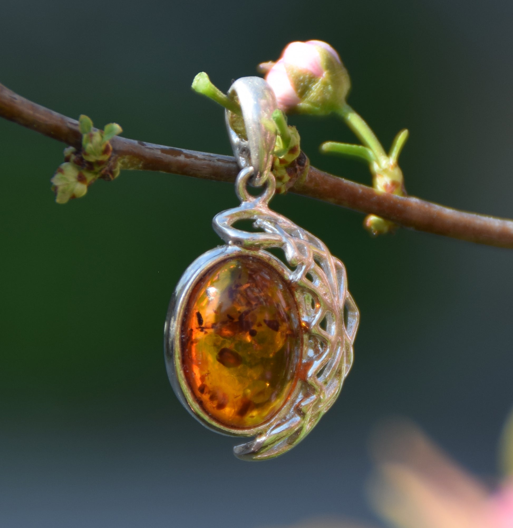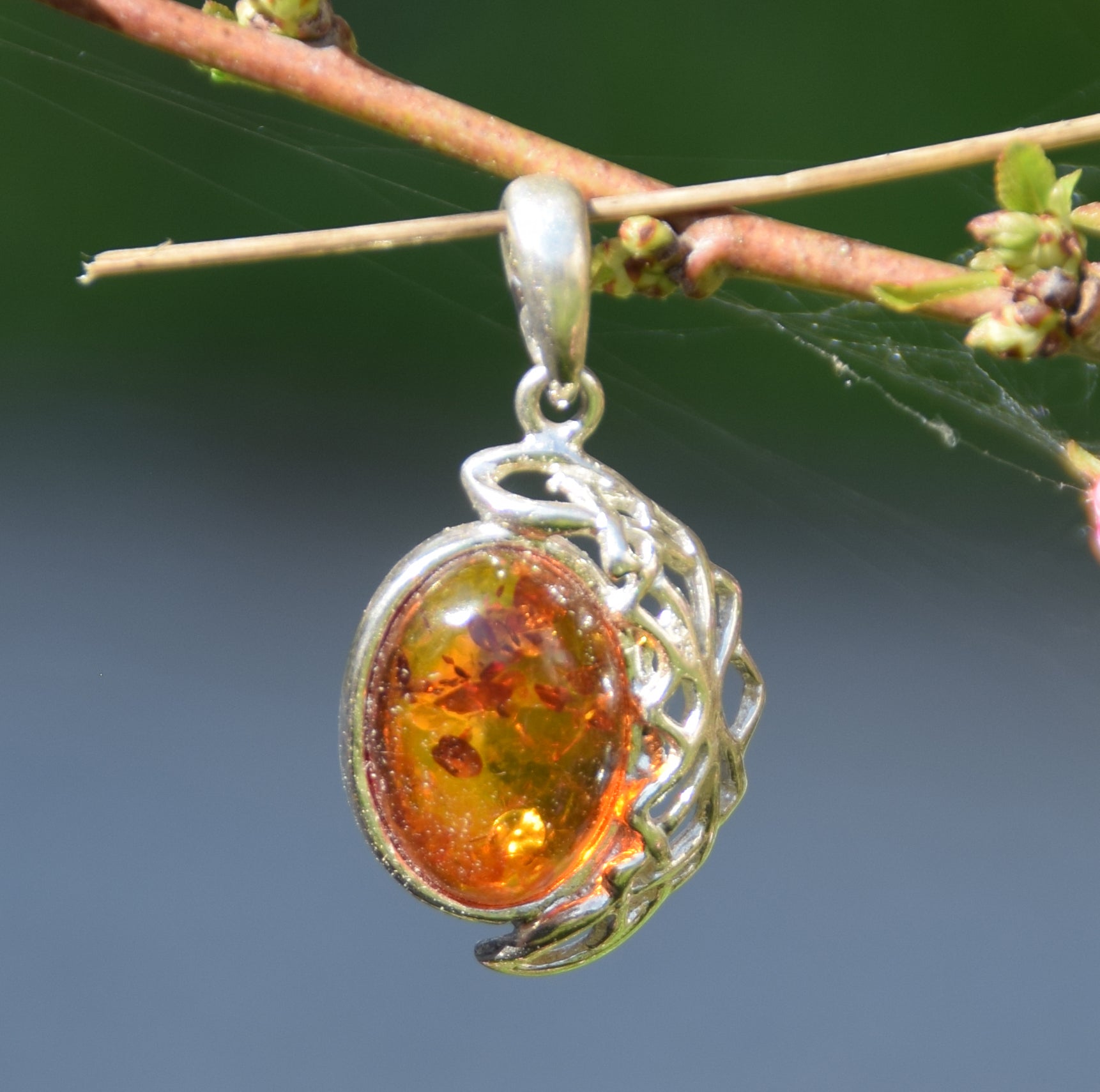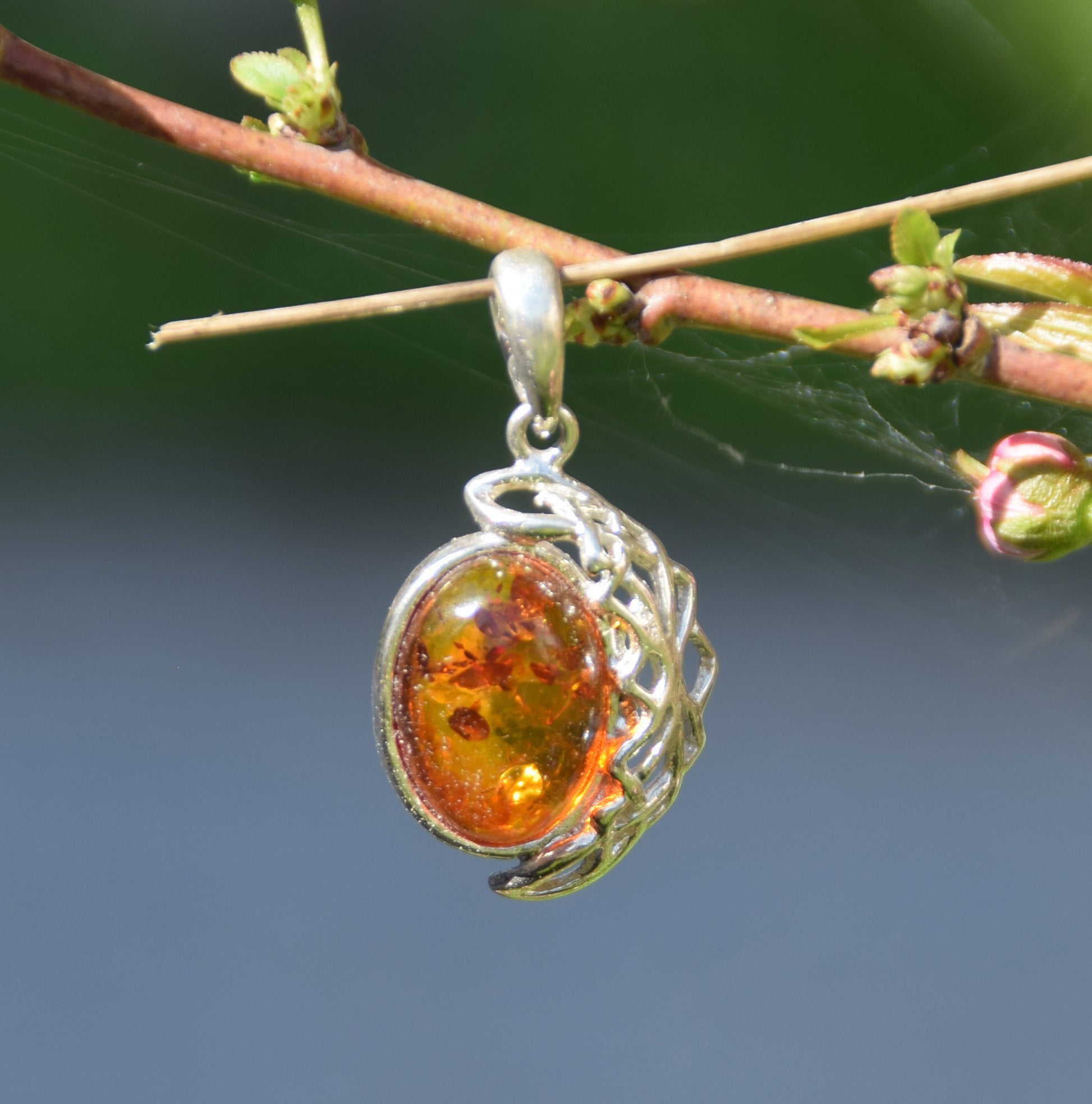 MJ Baltica, ciondolo, Ambra naturale Baltica, Argento 925, ovale, artigianale, delicato, BW164