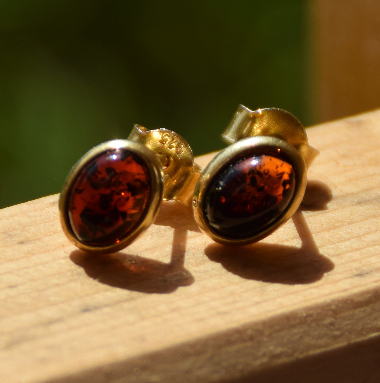 MJ Baltica, orecchini, Ambra naturale Baltica, Argento 925, placcato in Oro 18k, ambra cigliegia, luminoso, artigianale, BZK119