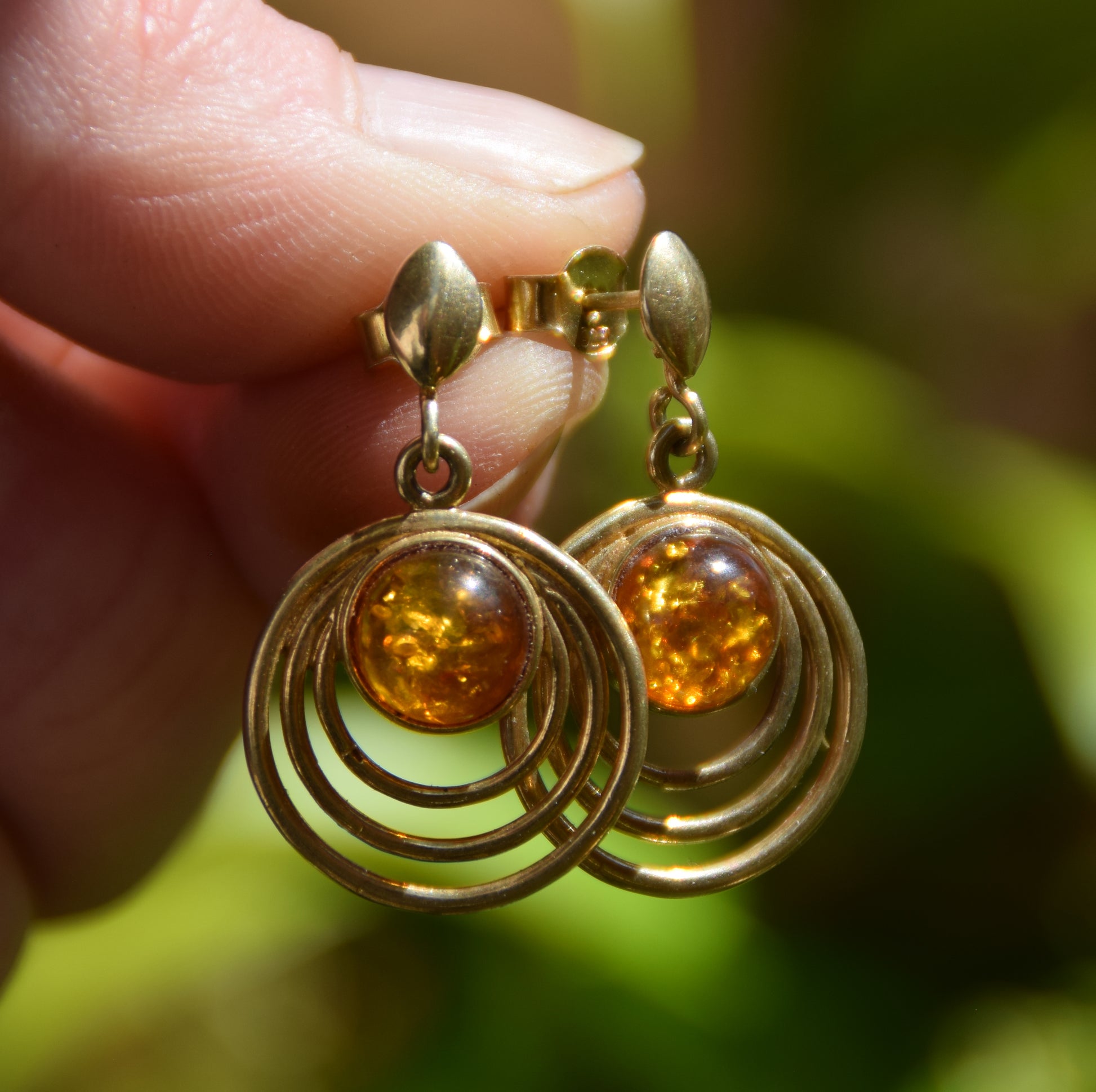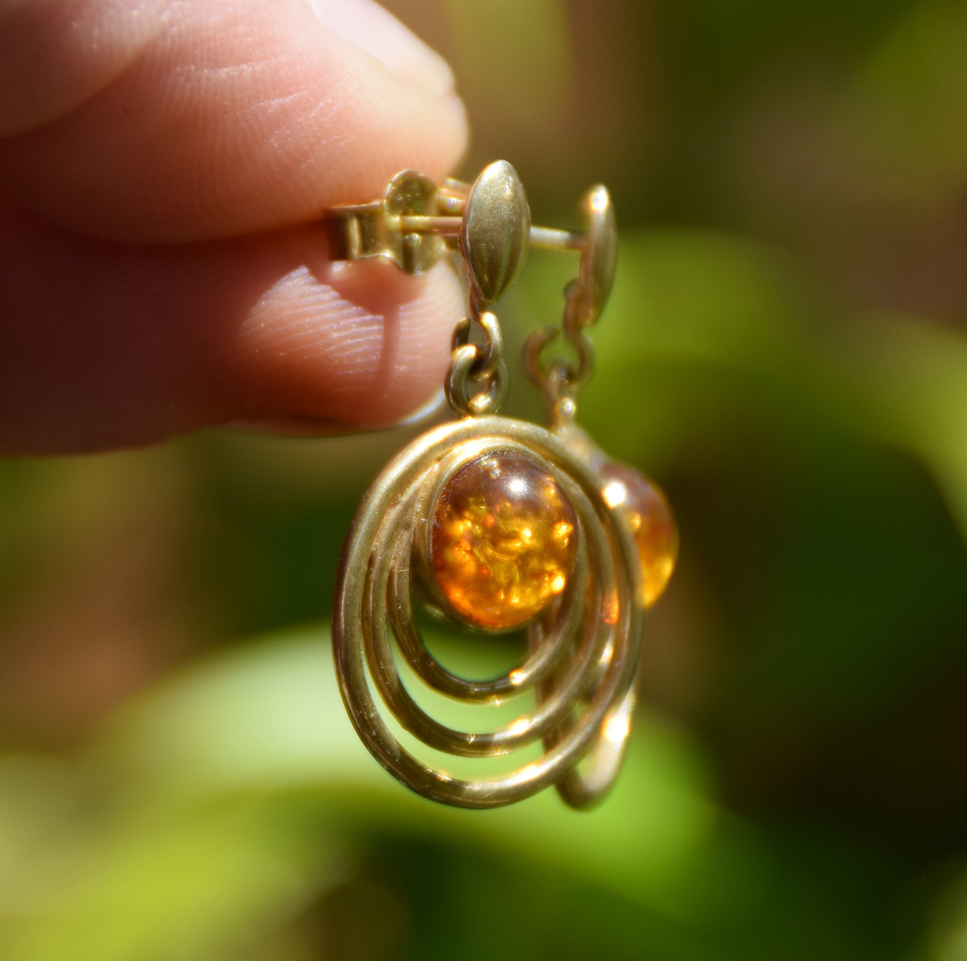 MJ Baltica, orecchini, Ambra naturale Baltica, Argento 925, placcato in Oro 18k, cerchio, ambra cognac, elegante, BZK092