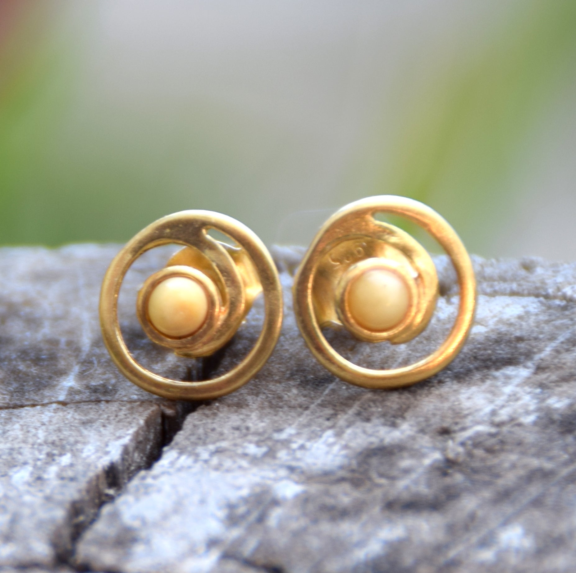 MJ Baltica, orecchini, Ambra naturale Baltica, Argento 925, placcato in Oro 18k, cerchio, ambra imperiale, artigianale, BZK127