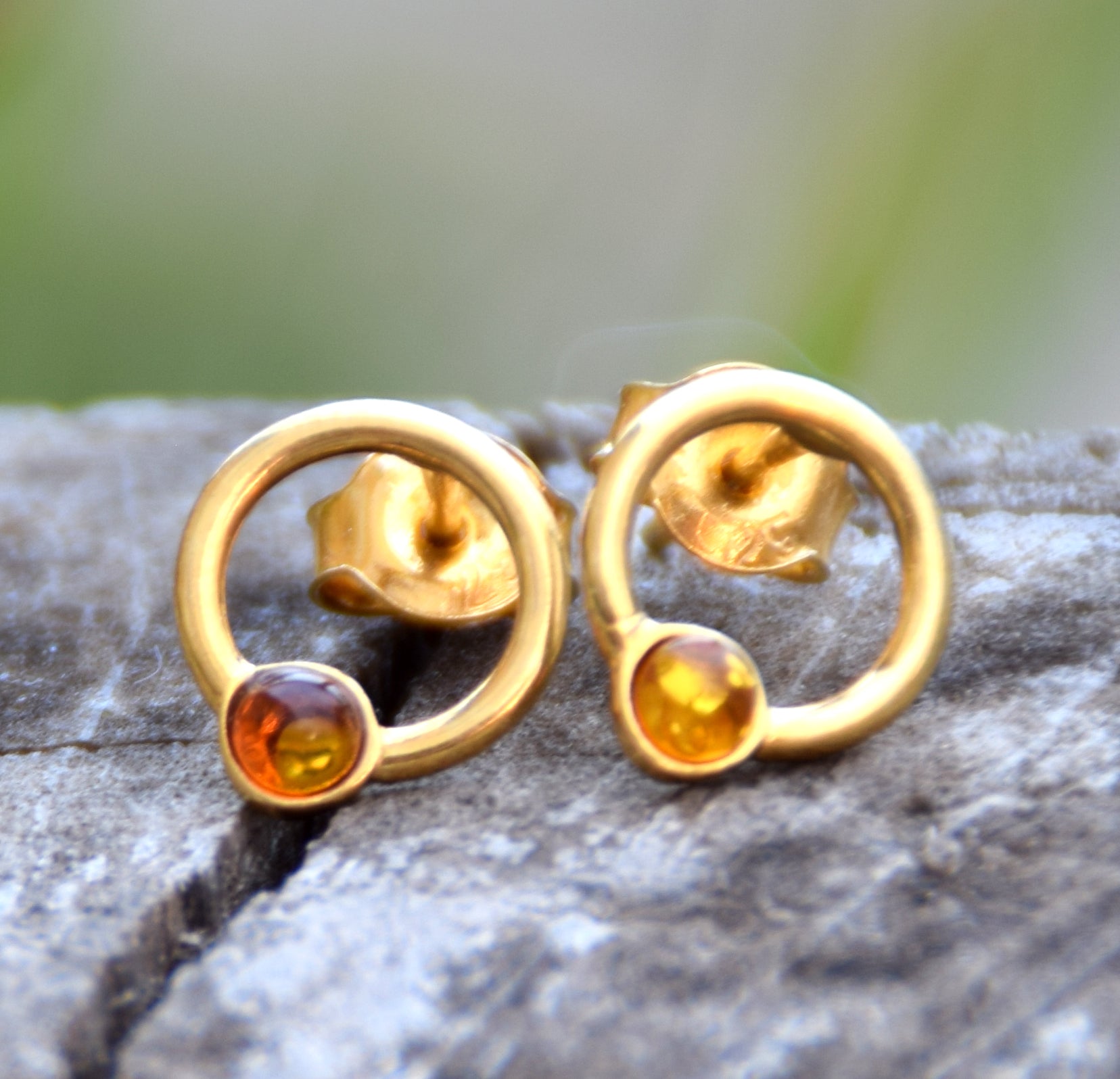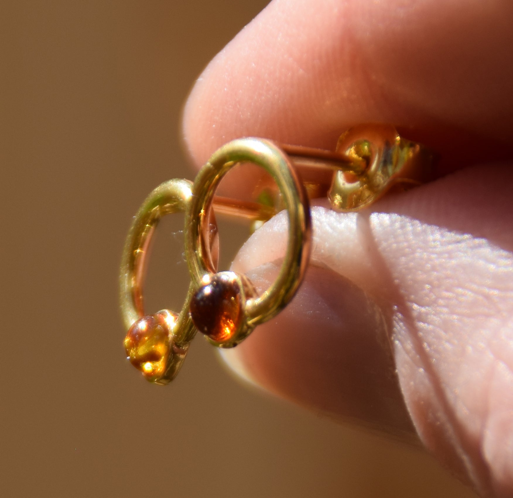 MJ Baltica, orecchini, Ambra naturale Baltica, Argento 925, placcato in Oro 18k, cognac, luminoso, artigianale, BZK105