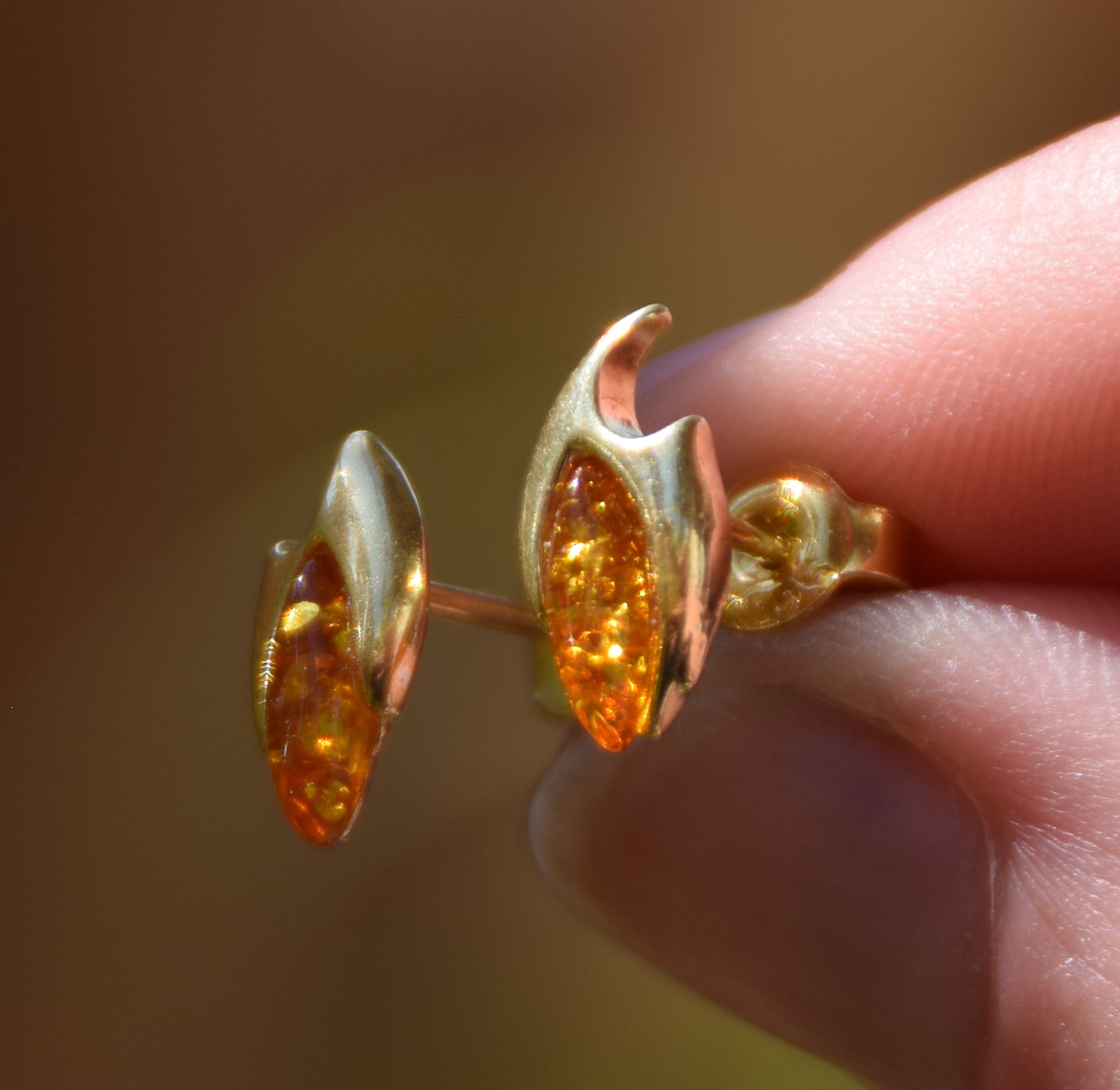 MJ Baltica, orecchini, Ambra naturale Baltica, Argento 925, placcato in Oro 18k, cognac, luminoso, artigianale, BZK107