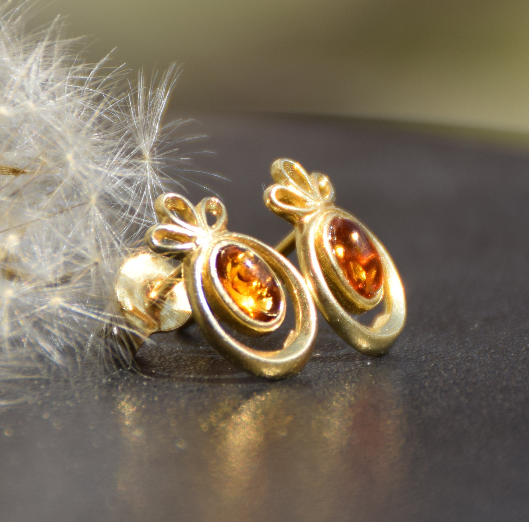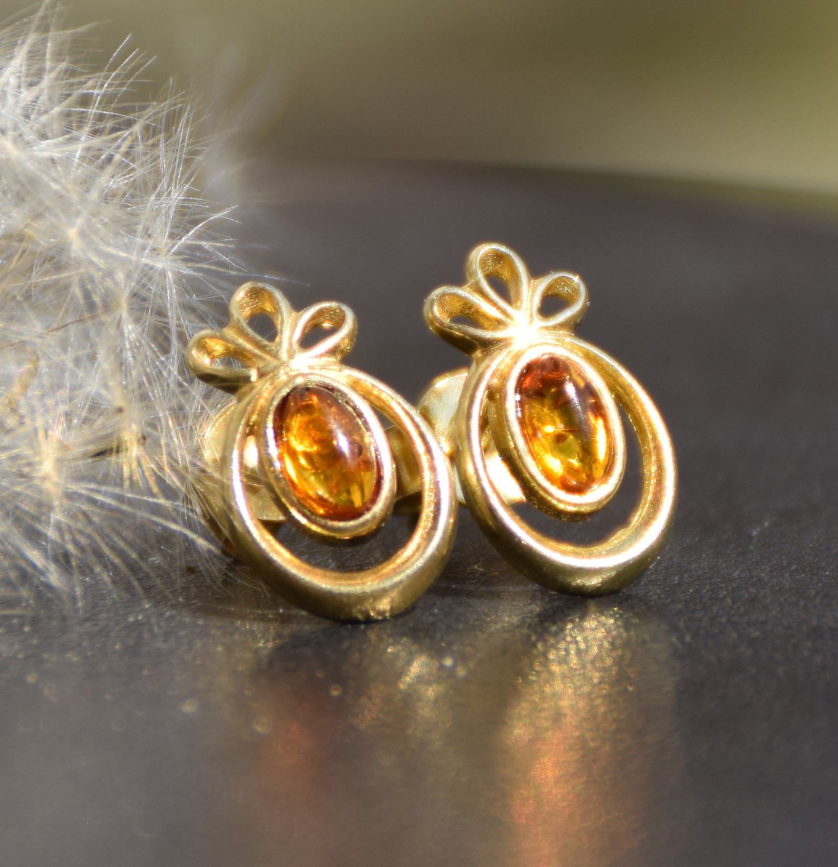 - Orecchini con le ambre di classico color miele;
