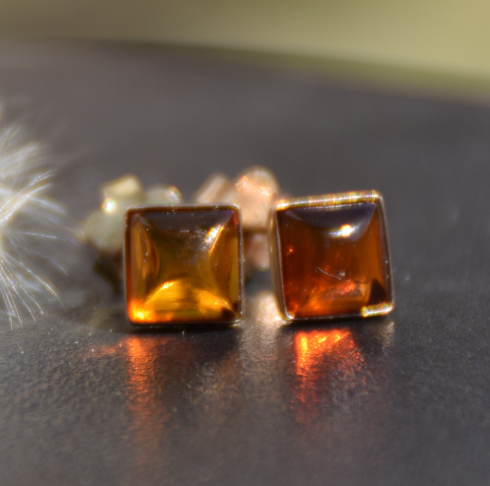 MJ Baltica, orecchini, Ambra naturale Baltica, Argento 925, placcato in Oro 18k, cognac, luminoso, rombo, artigianale, BZK097