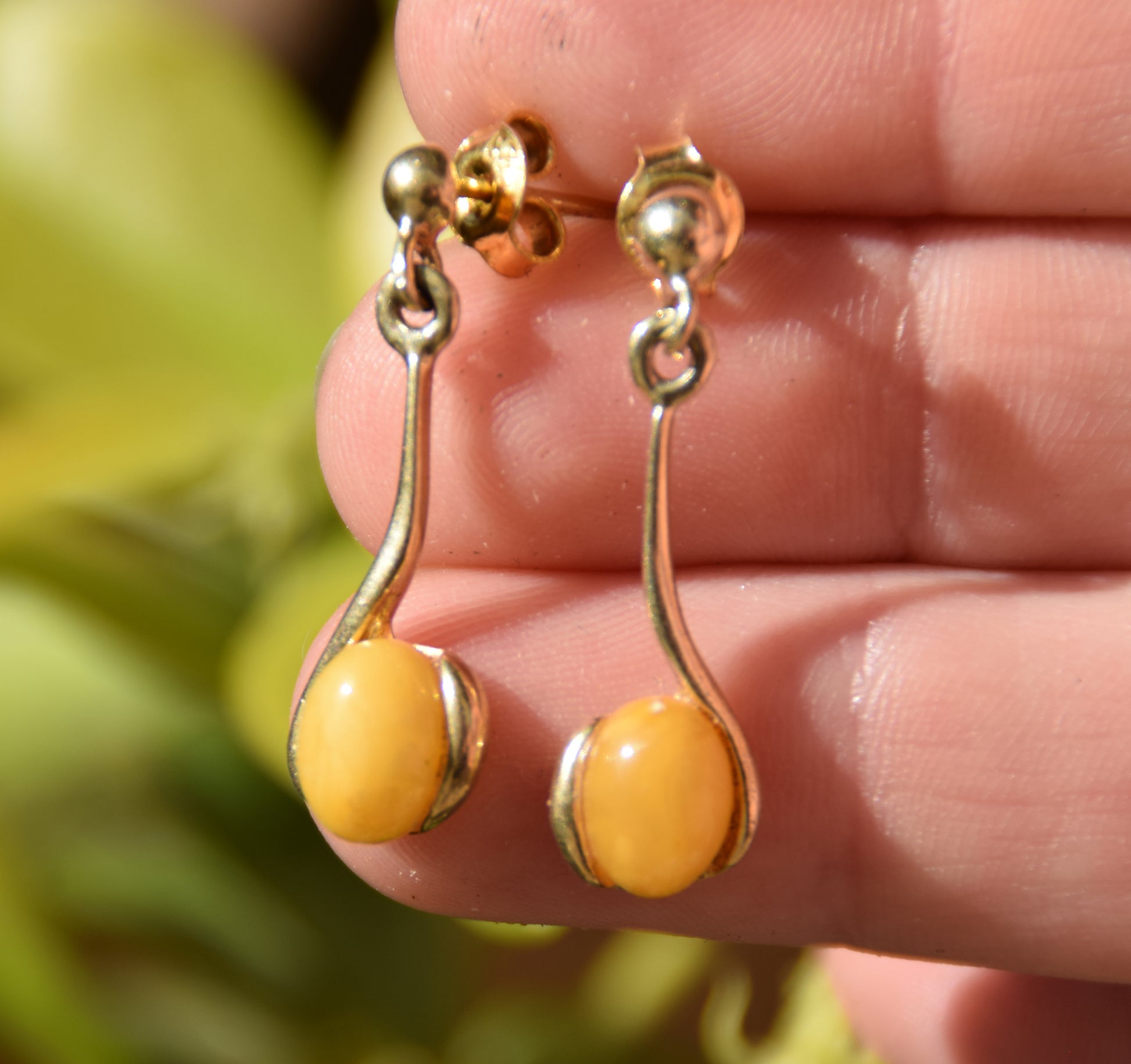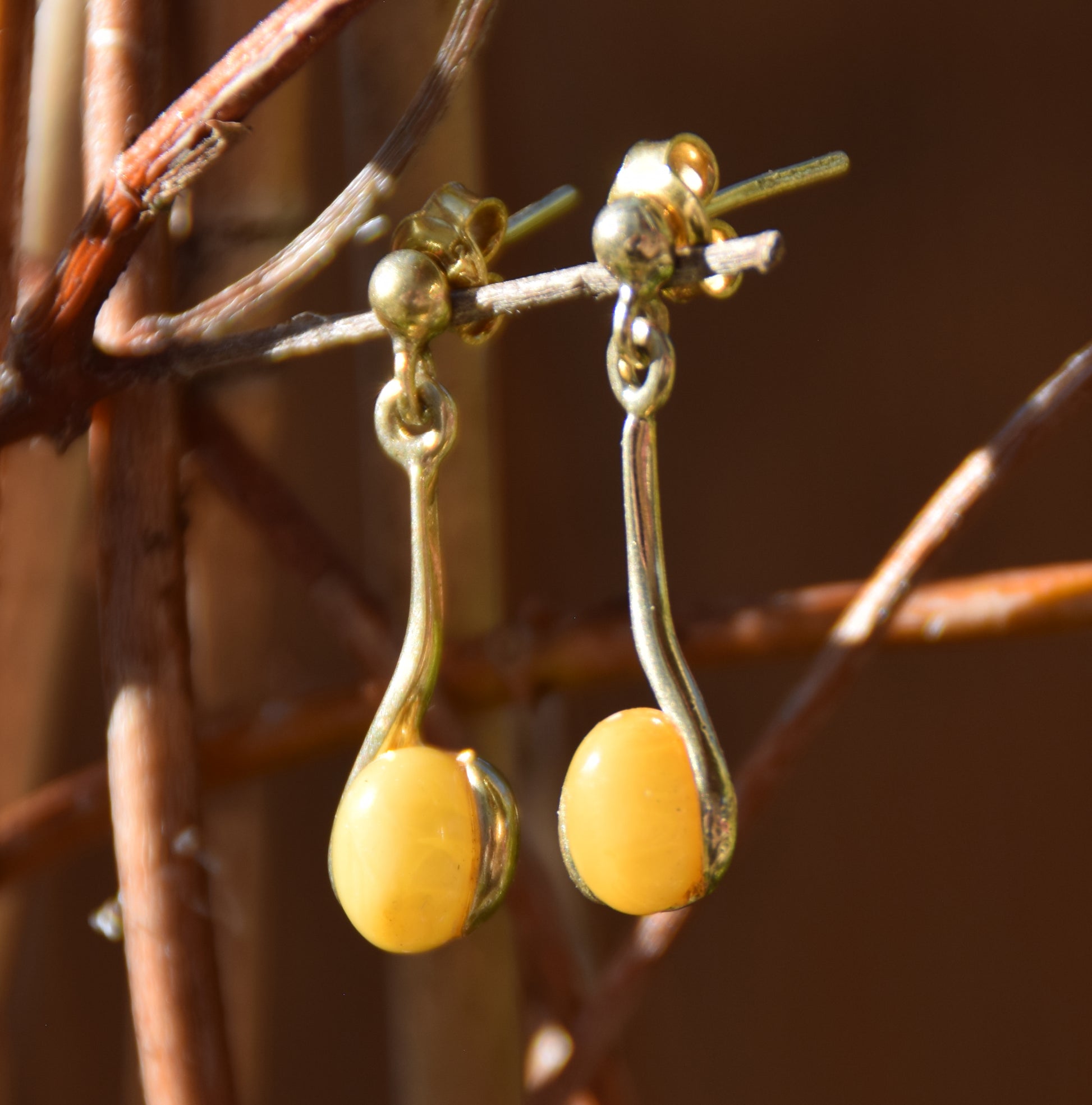 MJ Baltica, orecchini, Ambra naturale Baltica, Argento 925, placcato in Oro 18k, fine, ambra imperiale, elegante, BZK091