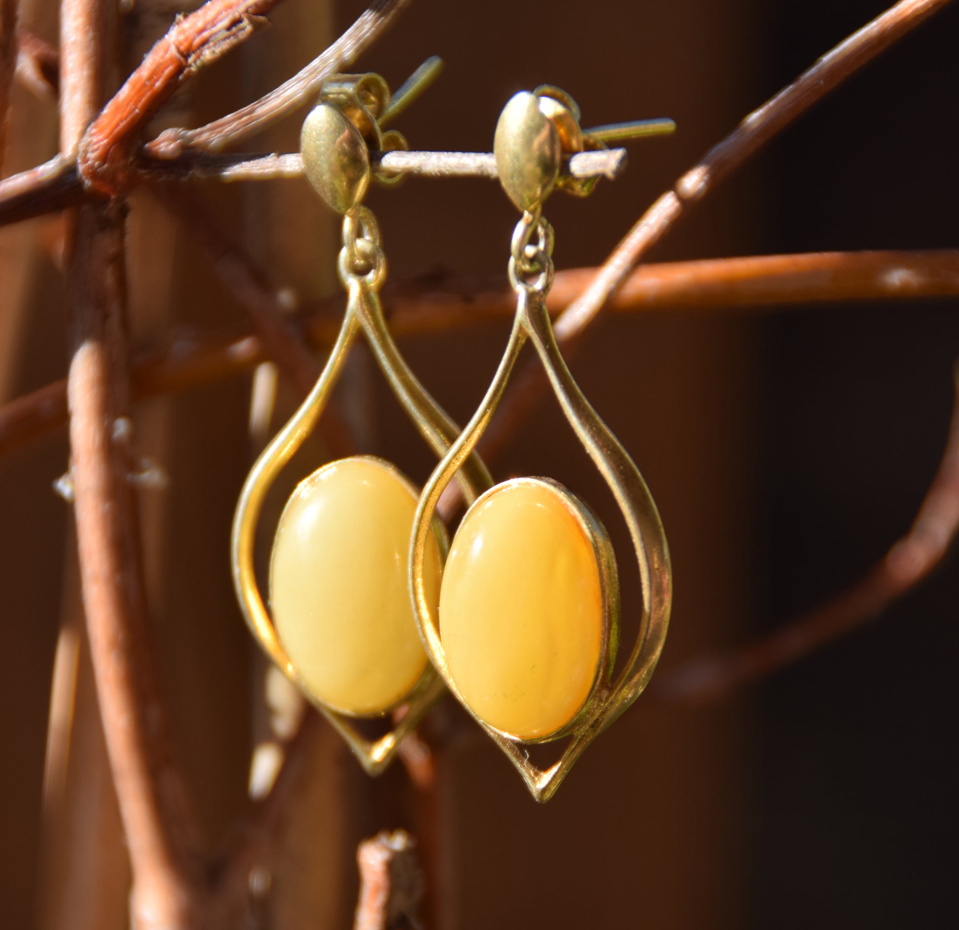 MJ Baltica, orecchini, Ambra naturale Baltica, Argento 925, placcato in Oro 18k, lungo, ambra imperiale, elegante, BZK089