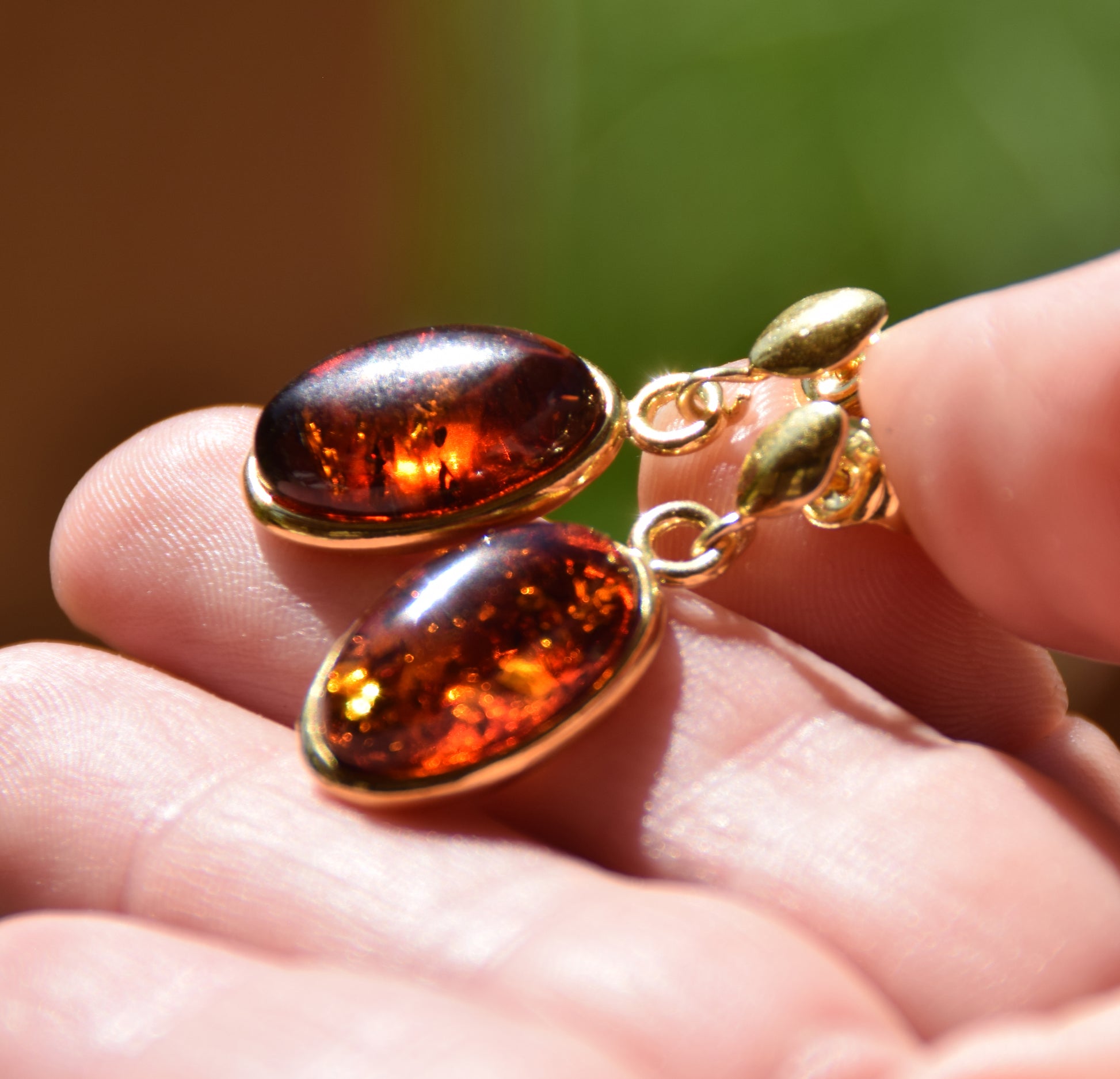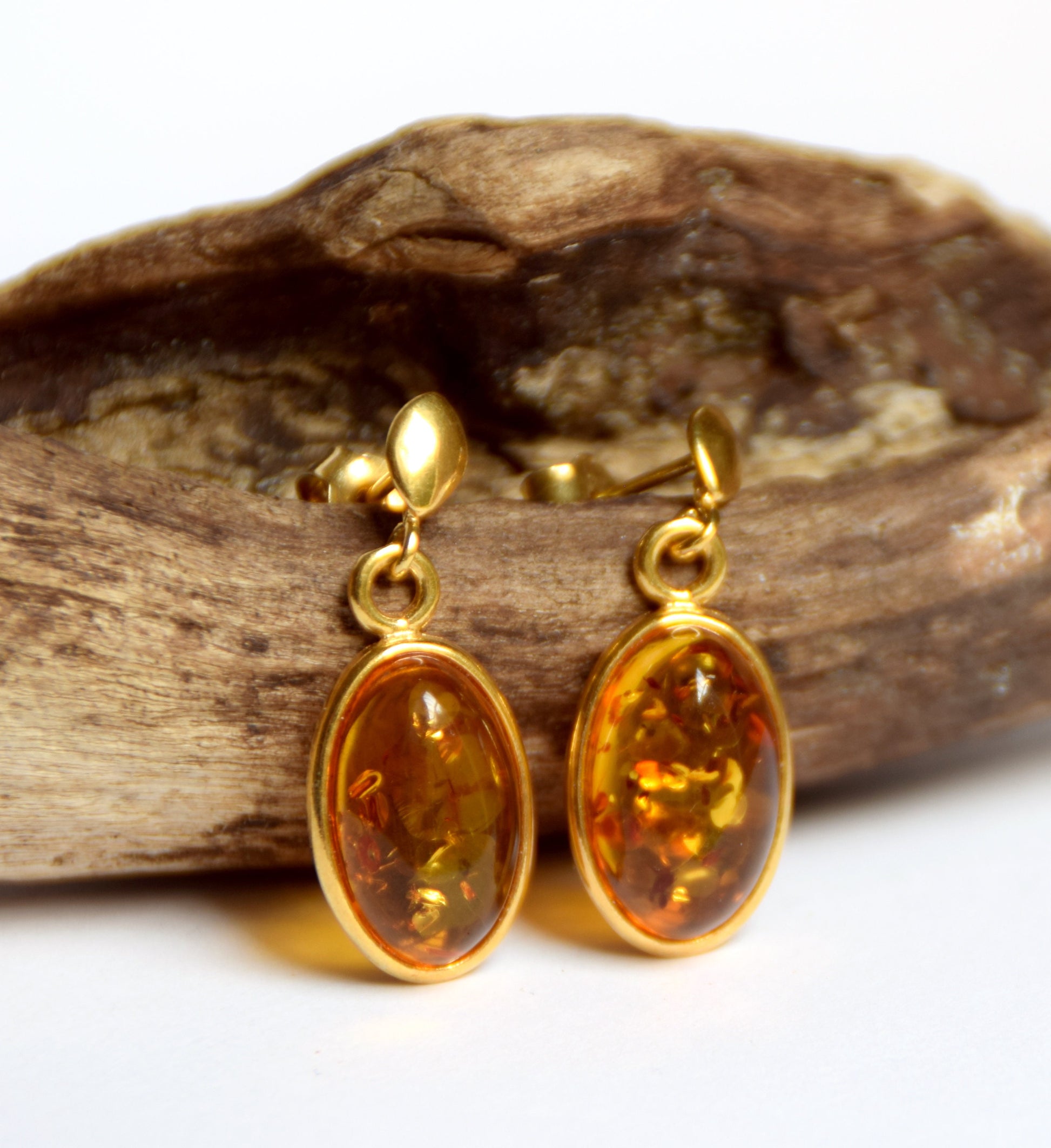 MJ Baltica, Orecchini, Ambra naturale Baltica, Argento, placcato in Oro 18k, elegante, classico, artigianale BZK002