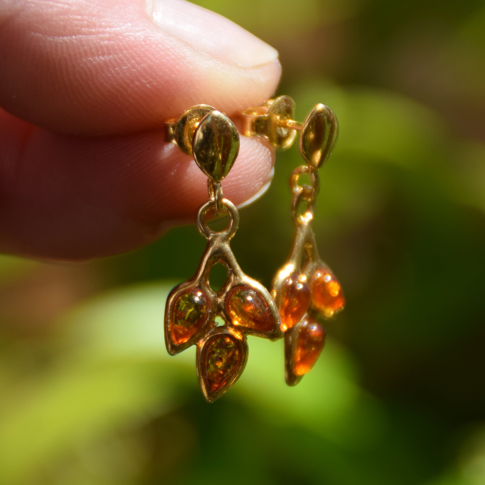MJ Baltica, orecchini, Ambra naturale Baltica, Argento, placcato Oro 18k, foglia, pendente, dolce BZK019