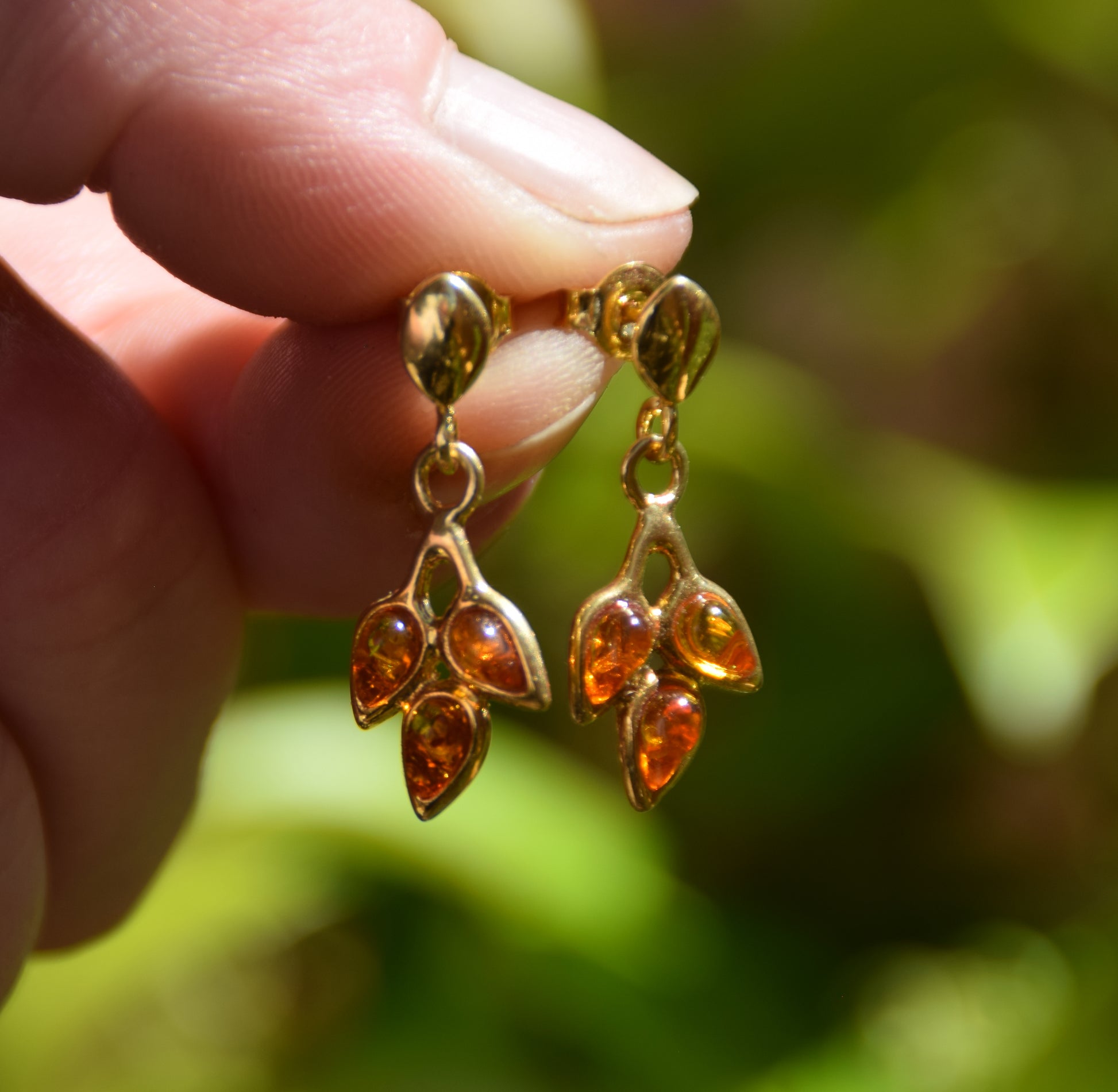 - Orecchini con le ambre a forma di goccia di classico color miele;