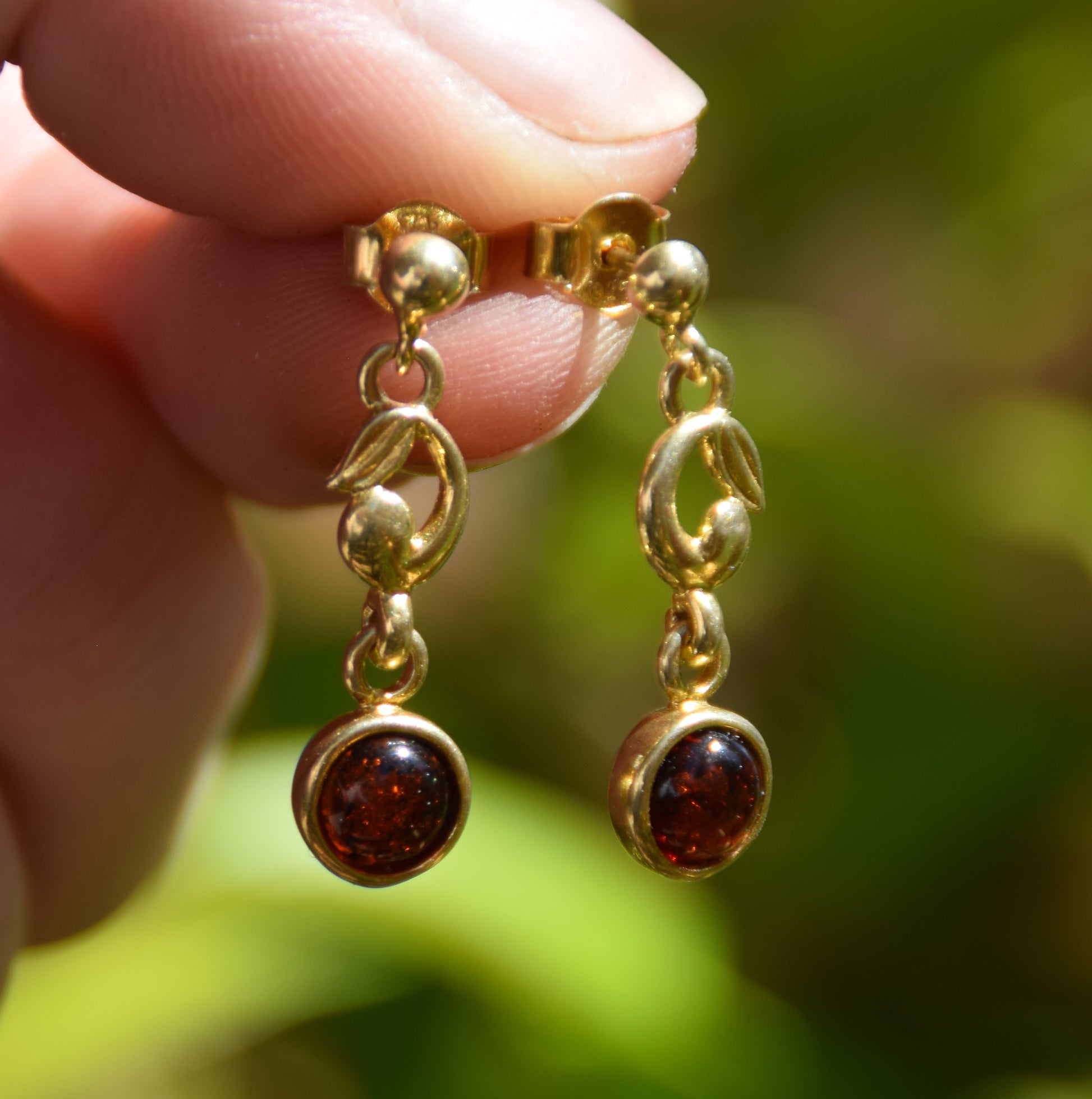 MJ Baltica, orecchini, pendenti, Ambra naturale Baltica, Argento, placcato in Oro 18k, BZK038