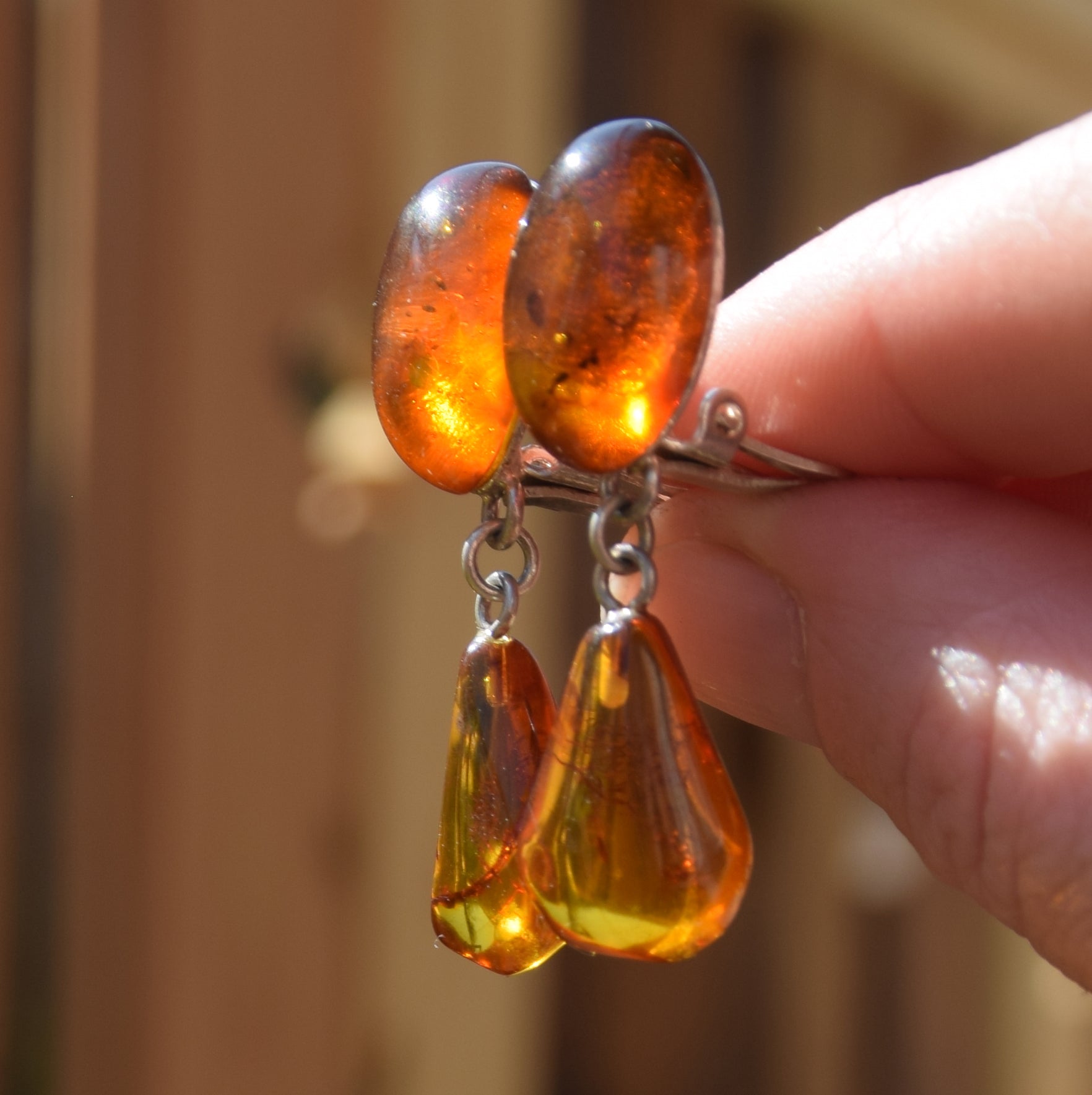 Orecchini pendenti a clip con Ambra dorata naturale e Argento 925, MJ Baltica, BKK011