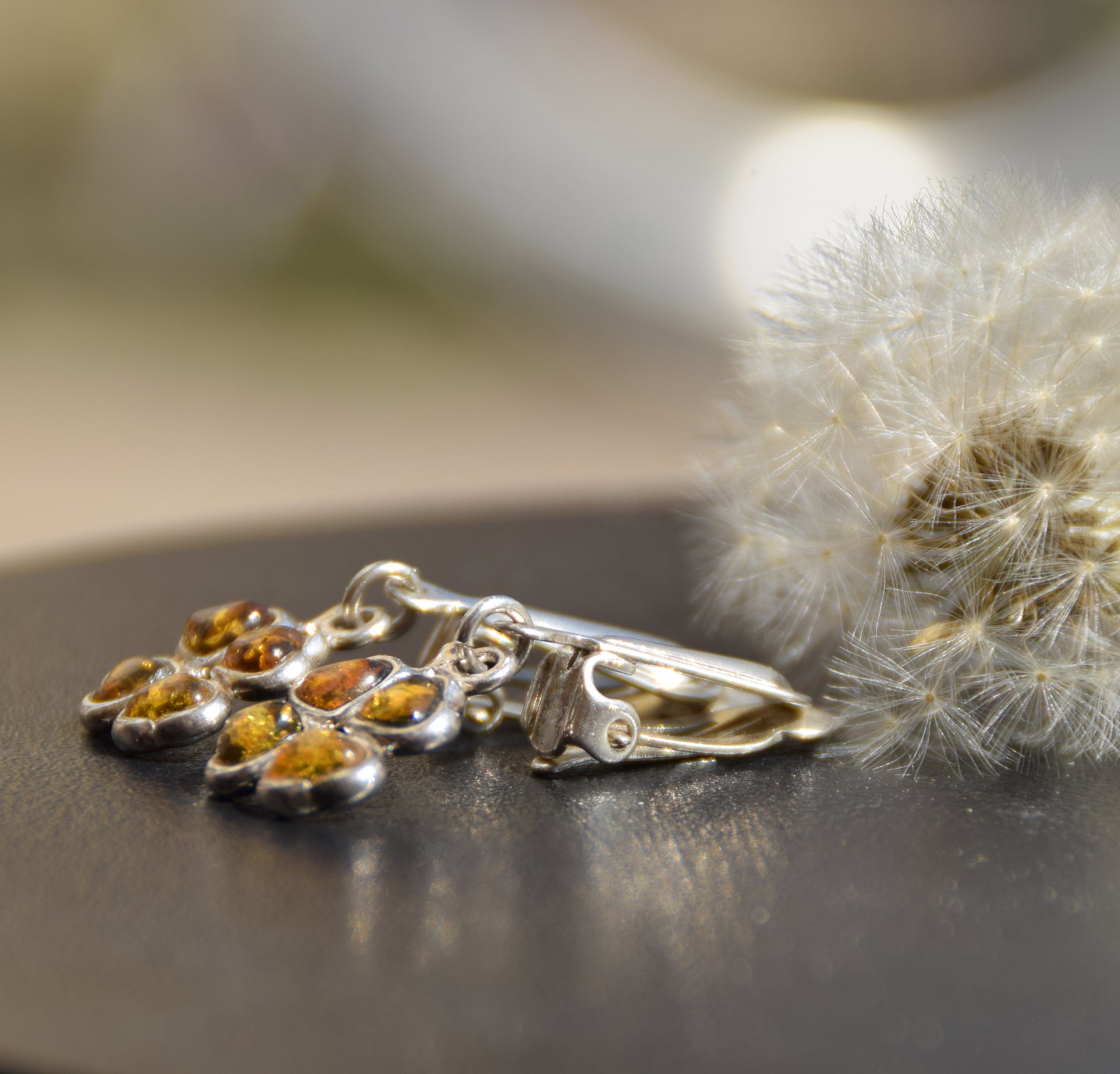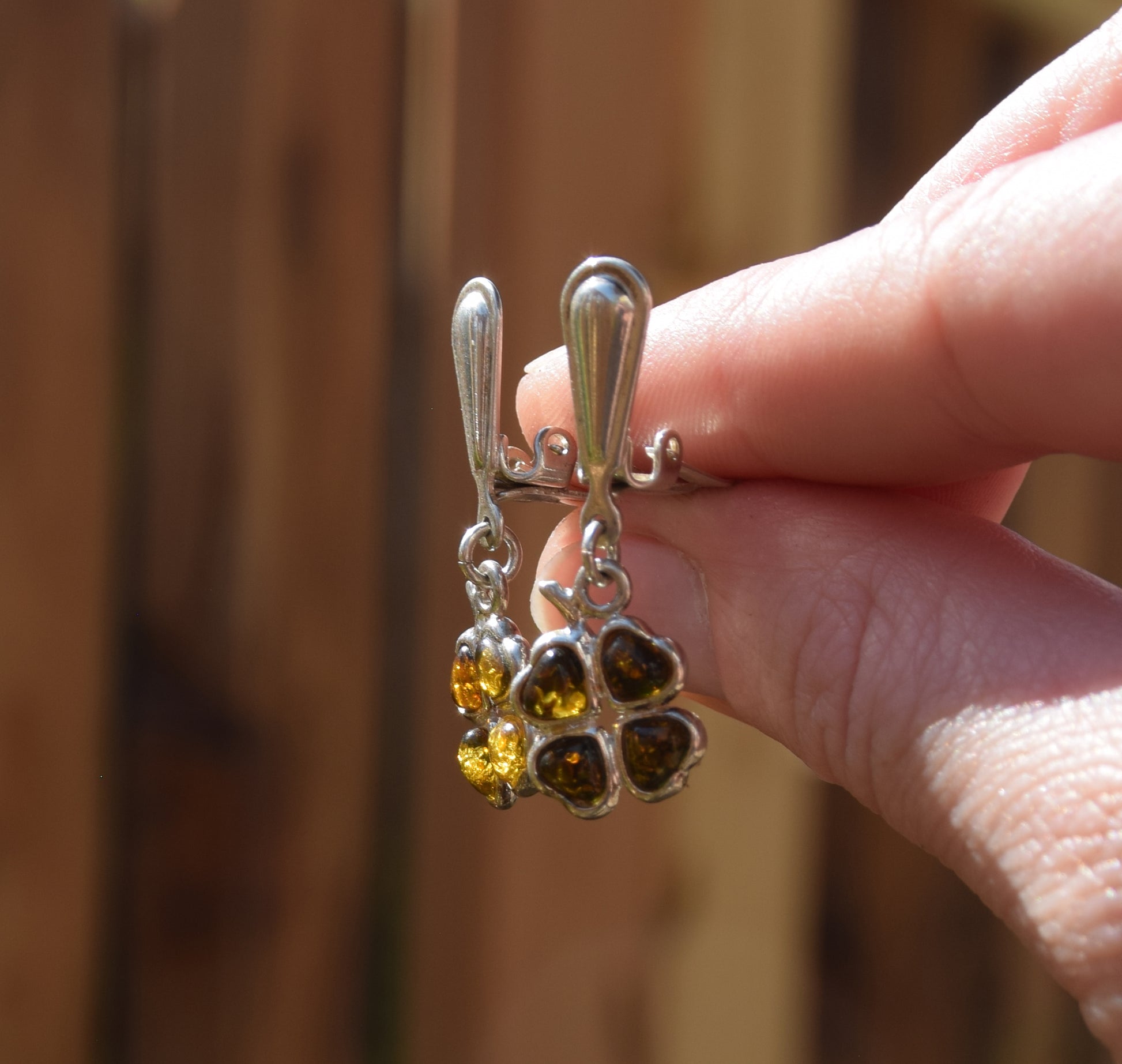 L’ambra, con le sue sfumature calde aggiunge eleganza e carattere a qualsiasi look, mentre il design del quadrifoglio portafortuna li rende pieni di gioia e perfetti sia per tutti i giorni sia per occasioni speciali.