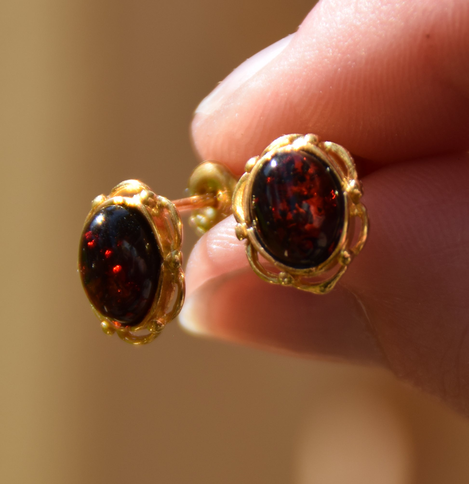 MJ Baltica, earrings, natural Baltic Amber, 925 Silver, 14k Gold plated, cherry amber, luminous, handcrafted, BZK116